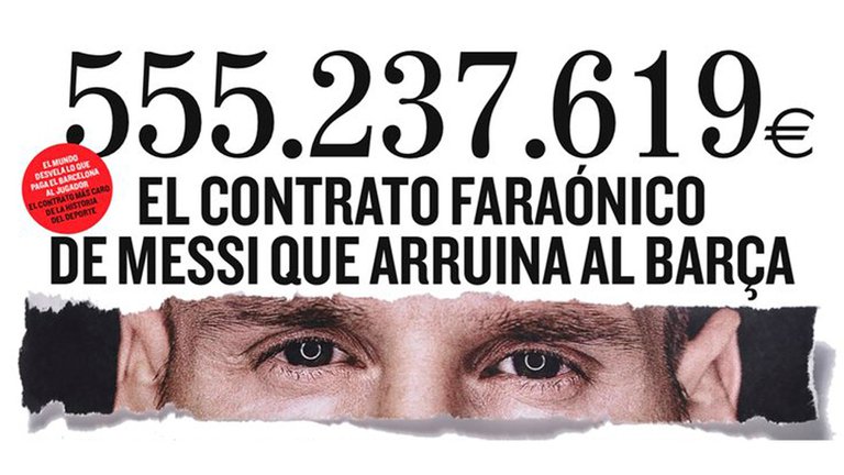 La nota que publicó el diario madrileño desató un escándalo en el mundo deportivo. Con el título “El contrato faraónico de Messi que arruina al Barça”, se detalló el sueldo que percibiría hasta el final de su vínculo en junio: 555.237.619 euros brutos durante cuatro temporadas en caso de cumplir todos los objetivos.