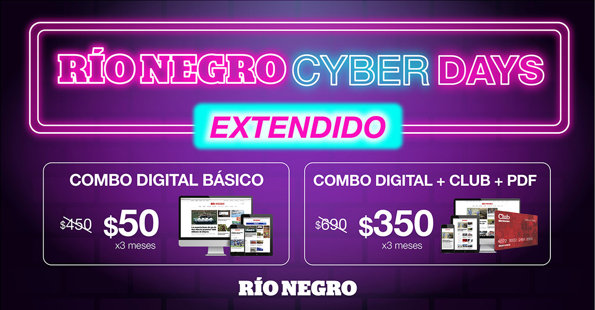 El Río Negro Cyber Days fue un éxito: entre lunes y miércoles muchos se convirtieron en nuevos suscriptores digitales de RÍO NEGRO y pueden disfrutar ilimitadamente de sus contenidos en todas las plataformas.