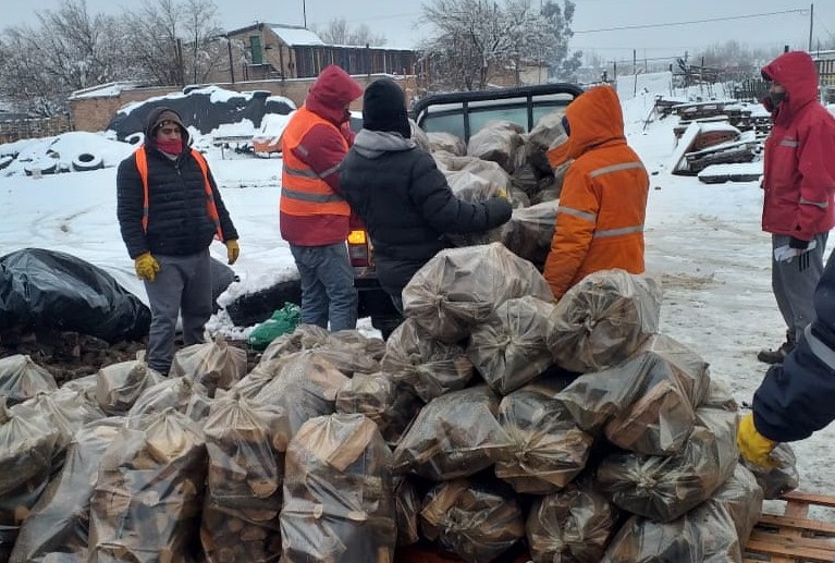 Desde los municipios, a través de las áreas de Desarrollo Social y Defensa Civil, en colaboración con los bomberos voluntarios se trabajó durante el fin de semana para poner en marcha los operativos de entrega de leña para las familias que no tienen el servicio de gas natural. Lo mismo con aquellos casos que la nieve provocó filtraciones en los techos que no están preparados para la acumulación de nieve. En este caso, se les entregó nailon.
