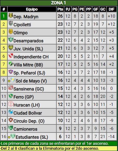 El equipo viedmense quedó en la misma situación que en la fecha anterior. Se encuentra afuera de la zona de clasificación, por diferencia de gol que favorece a Sportivo Peñarol de San Juan.