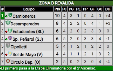 El triunfo de Camioneros por 2 a 0 ante Estudiantes (SL) y el empate en cero de Desamparados frente a Circulo Deportivo de Otamendi, dejaron sin chances matemáticas a Sol de Mayo que deberá jugar el 2 de enero frente a Estudiantes en San Luis, sólo para cumplir.