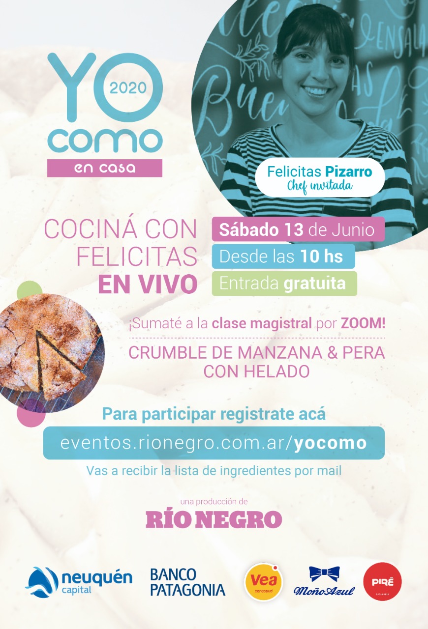 Yo Como hoy está de fiesta, desde las 10 Felicitas Pizarro cocinó en vivo un crumble de manzana y pera con helado con nuestra audiencia. Fue una clase magistral por Zoom.
