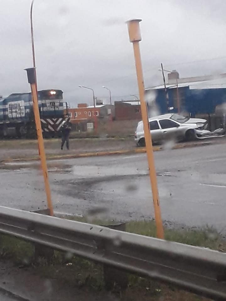 Una locomotora chocó a un auto esta mañana en uno de los accesos a la ciudad de Fernández Oro, frente a la estación de servicio de YPF.