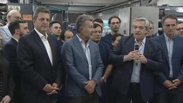 Fernández encabezó un acto en la ciudad bonaerense de San Martín, donde estuvo acompañado por el diputado electo Sergio Massa y el intendente local, Gabriel Katopodis, entre otros referentes del Frente de Todos.