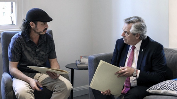 El mandatario se reunió en la Residencia de Olivos con «Nacho» Levy, referente de la organización La Garganta Poderosa, para analizar la «situación de los barrios populares porteños ante el avance de la pandemia», según consignó en su cuenta de Twitter.