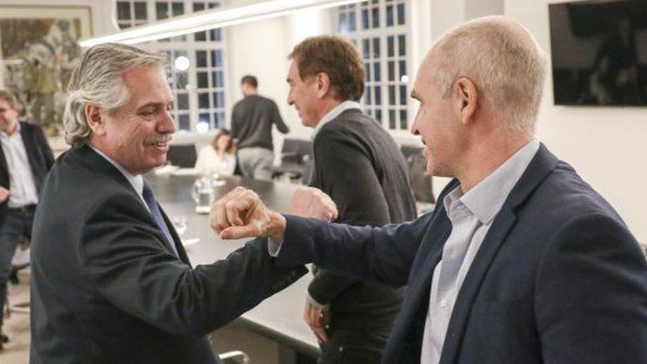 El presidente Alberto Fernández y el jefe de Gobierno de la Ciudad, Horacio Rodríguez Larreta, hablaron esta tarde por espacio de 15 minutos por videollamada para evaluar la situación sanitaria por la pandemia de coronavirus en el ámbito metropolitano y coincidieron en seguir «analizando día a día los datos» para avanzar en la definición de una política «coordinada».