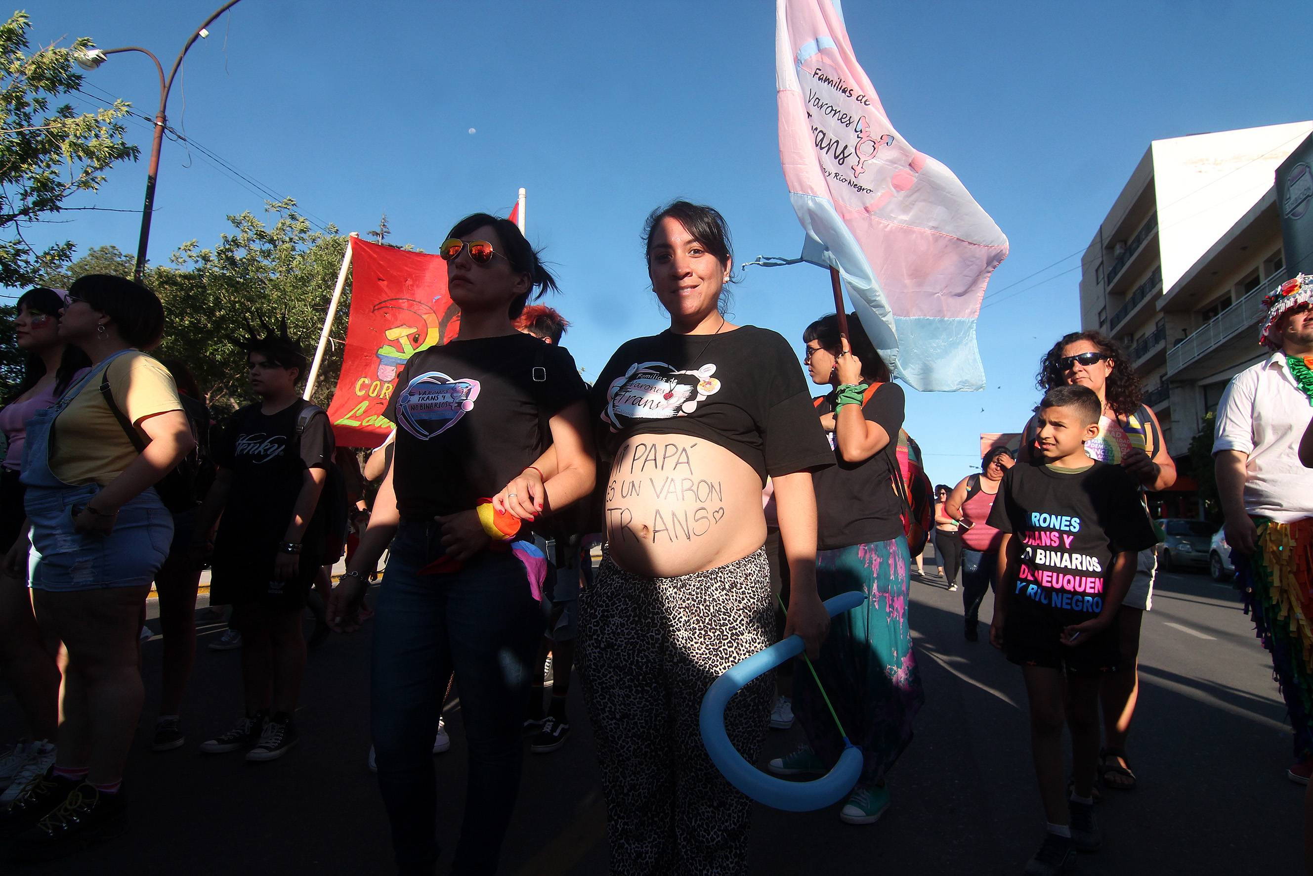 Justamente en la última marcha del orgullo, Andree escribió en la panza de Yohana “Mi papá es un varón trans”, como un acto político de visibilización (ver aparte).
