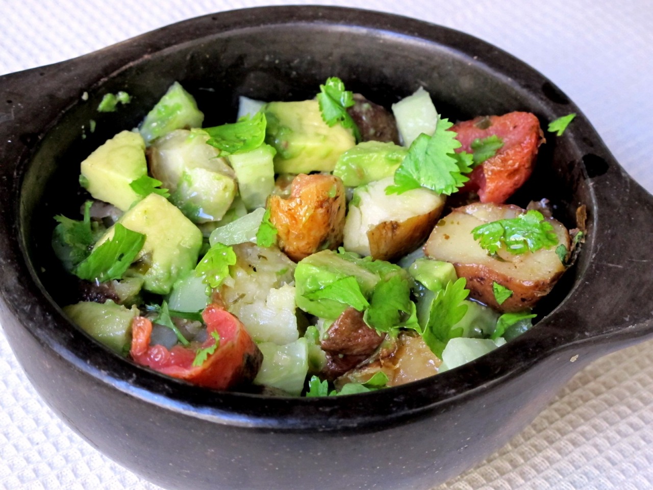 Ensalada de papines, palta y pepinos