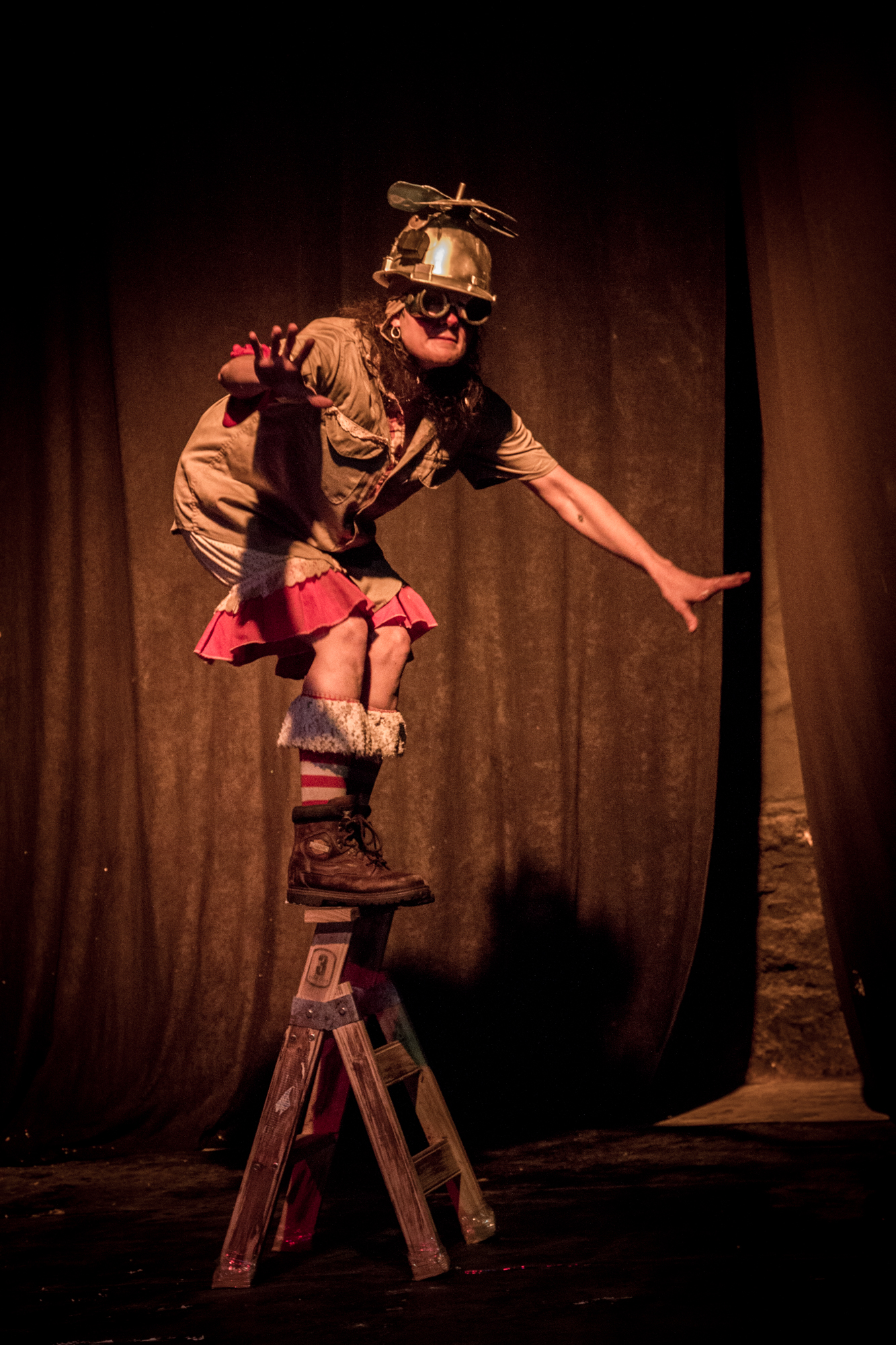 Este unipersonal actuado por Ana Municoy Tejedor propone la historia de una niña que juega a no estar sola y el misterioso destino le trae un regalo con alas. Adolece la existencia palo tras palo y chichón tras chichón por que la mujer ya aprendió que vida empieza con “v” de vuelo y vuelo con “v” de voluntad.