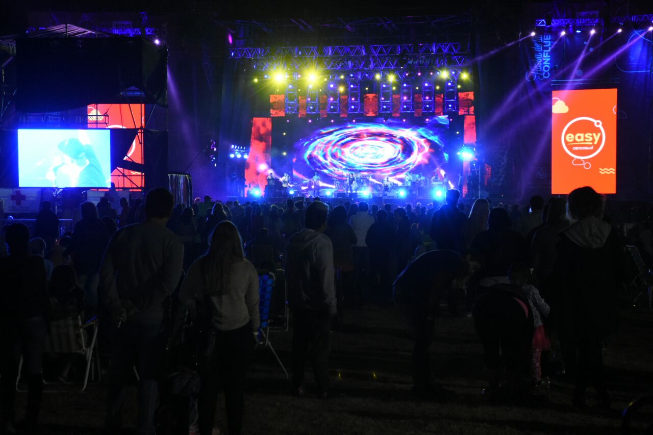 La segunda noche de la Fiesta de la Confluencia está colmada de gente. Los espacios para caminar comienzan a reducirse, y se dificulta el tránsito por los pasillos de la isla 132.