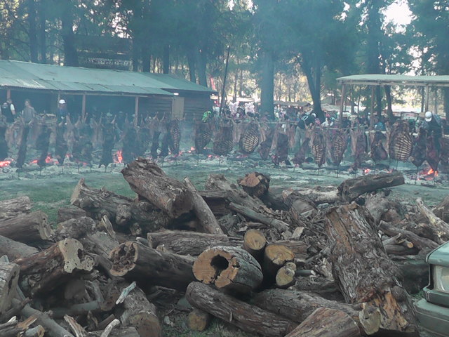 “Cholila ya es la fiesta grande de nuestra Patagonia”, resumió anoche Carina González, una turista de Cipolletti ante una enorme porción de asado con cuero que acababan de sacar del fogón “más caliente de América”, con más de cien metros de largo.