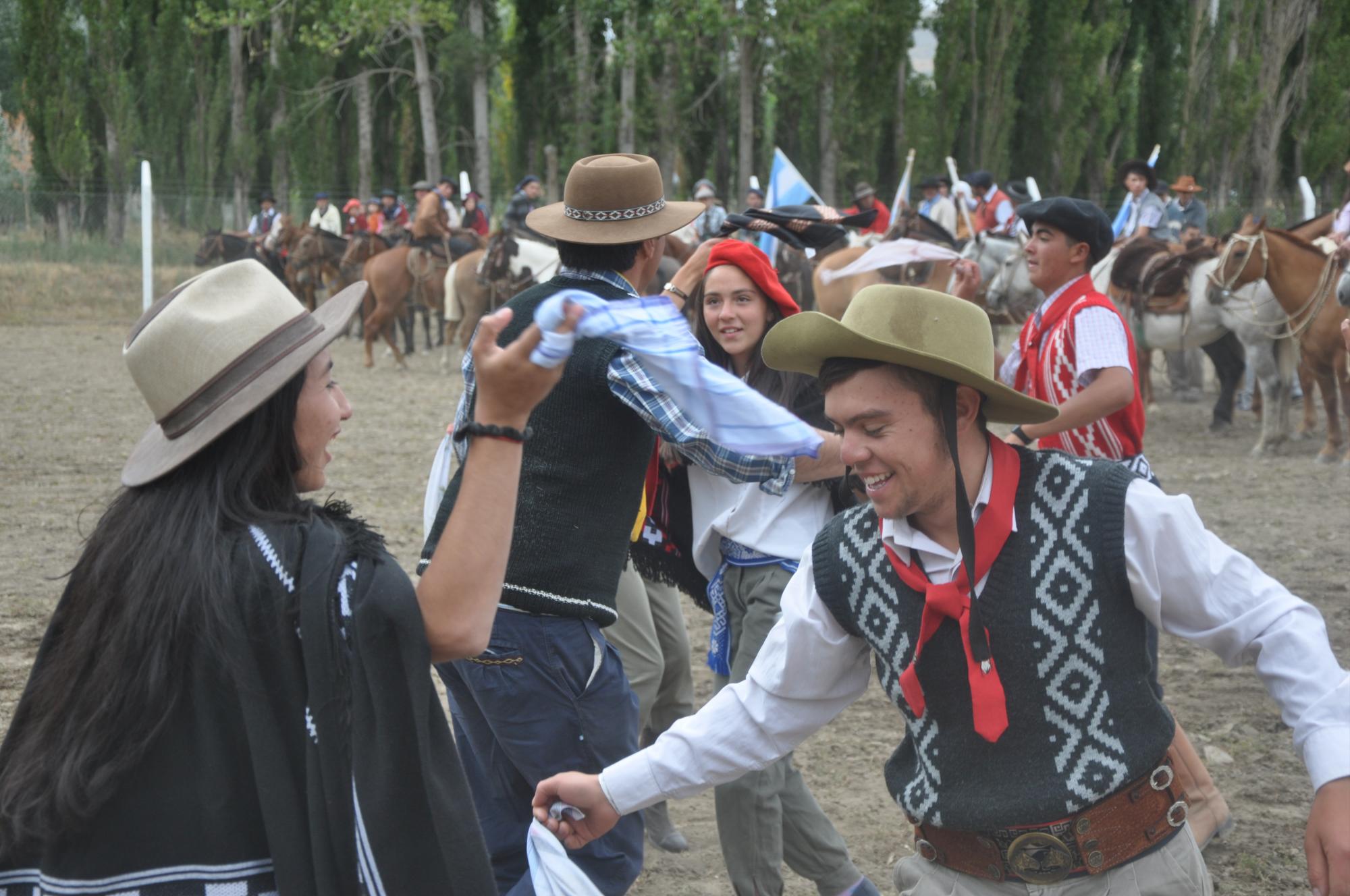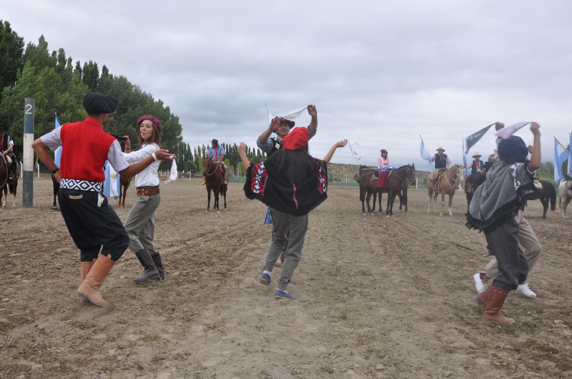Los adultos protagonizaron el pial puerta afuera acompañado por los payadores que le pusieron un toque especial al evento y por la noche, danzas, música y canto se vivieron en el escenario.