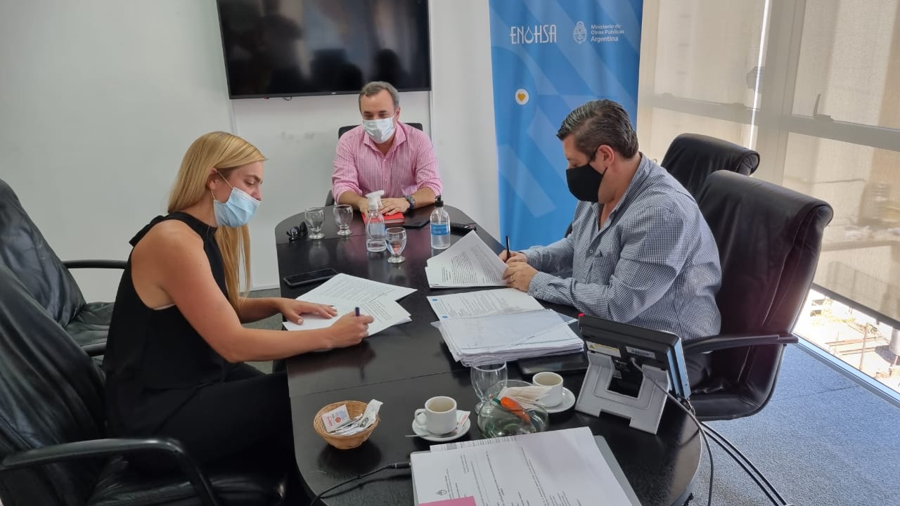 A partir de las gestiones realizadas por la intendenta y contando con la factibilidad técnica de ARSA, se concretó en Buenos Aires la firma de los convenios específicos que permitirán llevar adelante las obras de “Red de Agua para el barrio Fiske Menuco”, “Red Colectora Cloacal para el barrio Fiske Menuco” y “Red Colectora Cloacal para Barrio Nuevo sector Noroeste”.