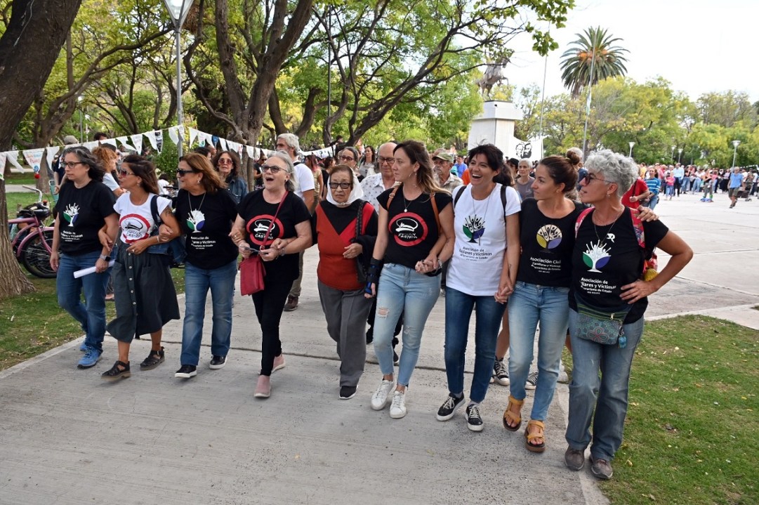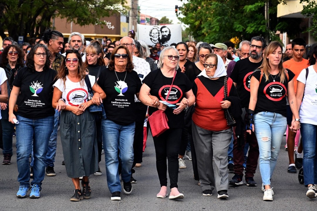 Bajo la consigna «Corporación judicial, nunca más» cientos de vecinos realizaron una marcha alrededor de la plaza y, luego por el perímetro de la estatua central como homenaje a las Madres y Abuelas de Plaza de Mayo.
