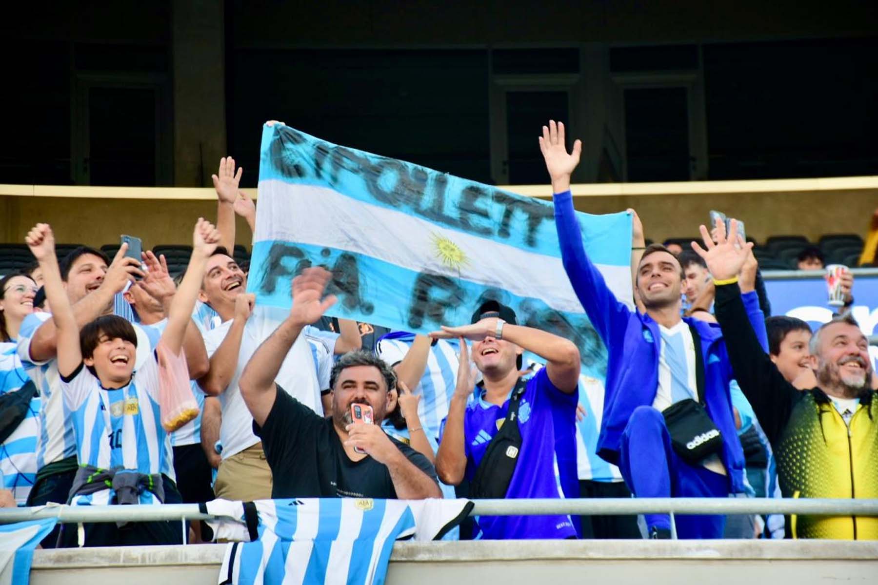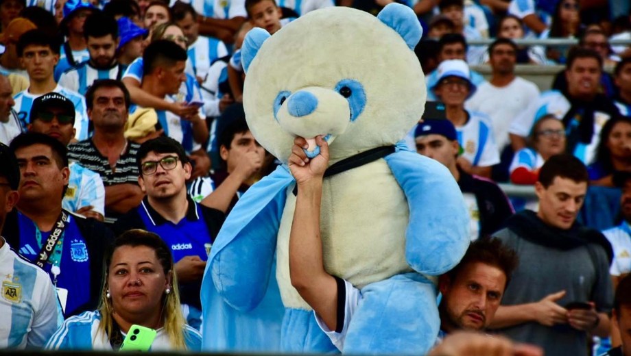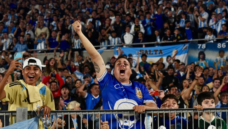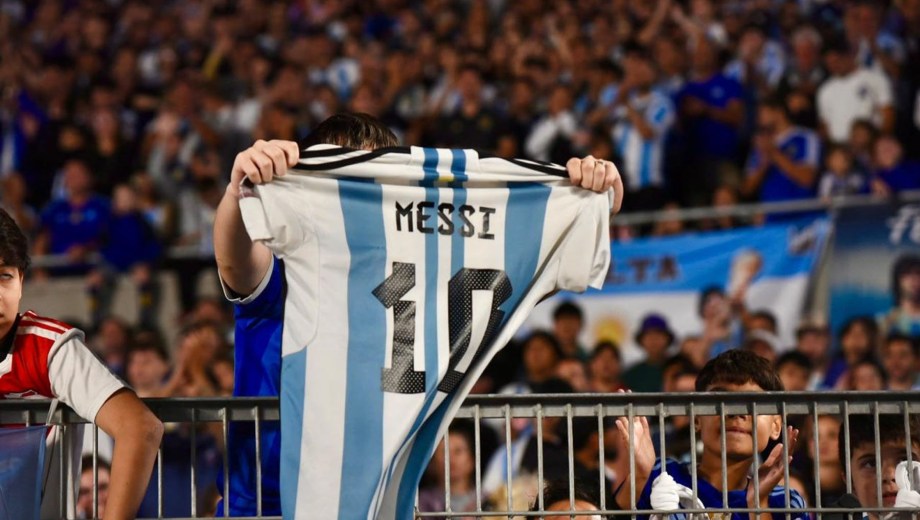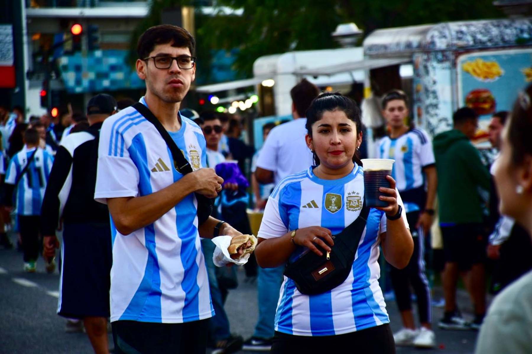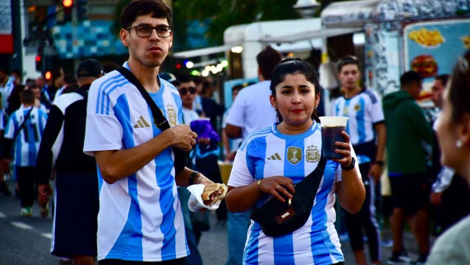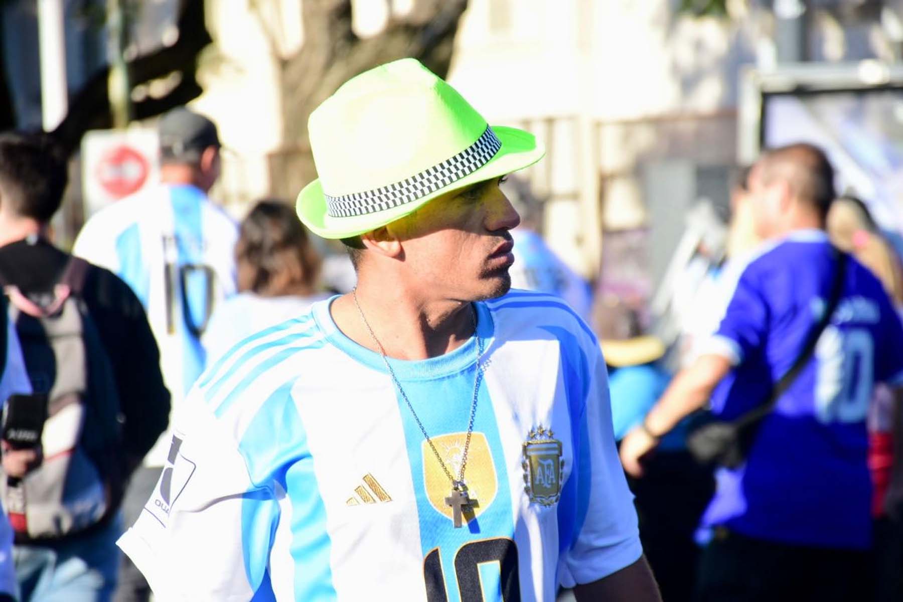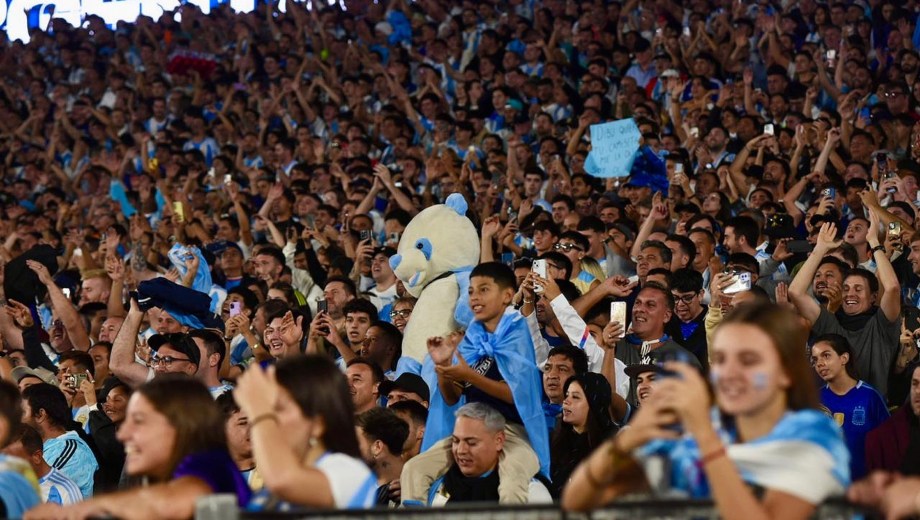 El celeste y blanco domina el color en el público con muchas camisetas de Julián Álvarez y Dibu Martínez, más allá de las de Lionel Messi que son amplia mayoría.