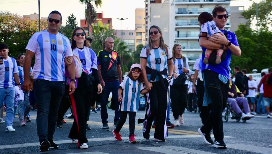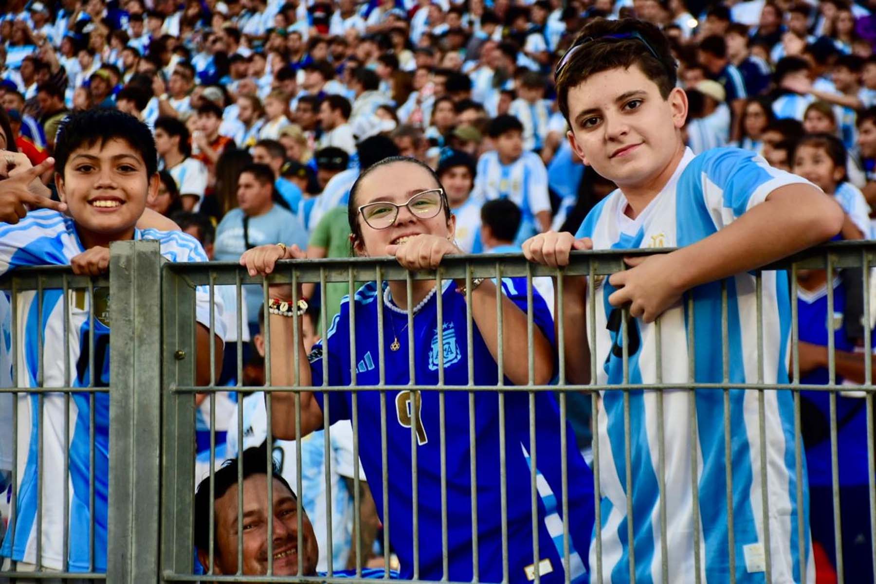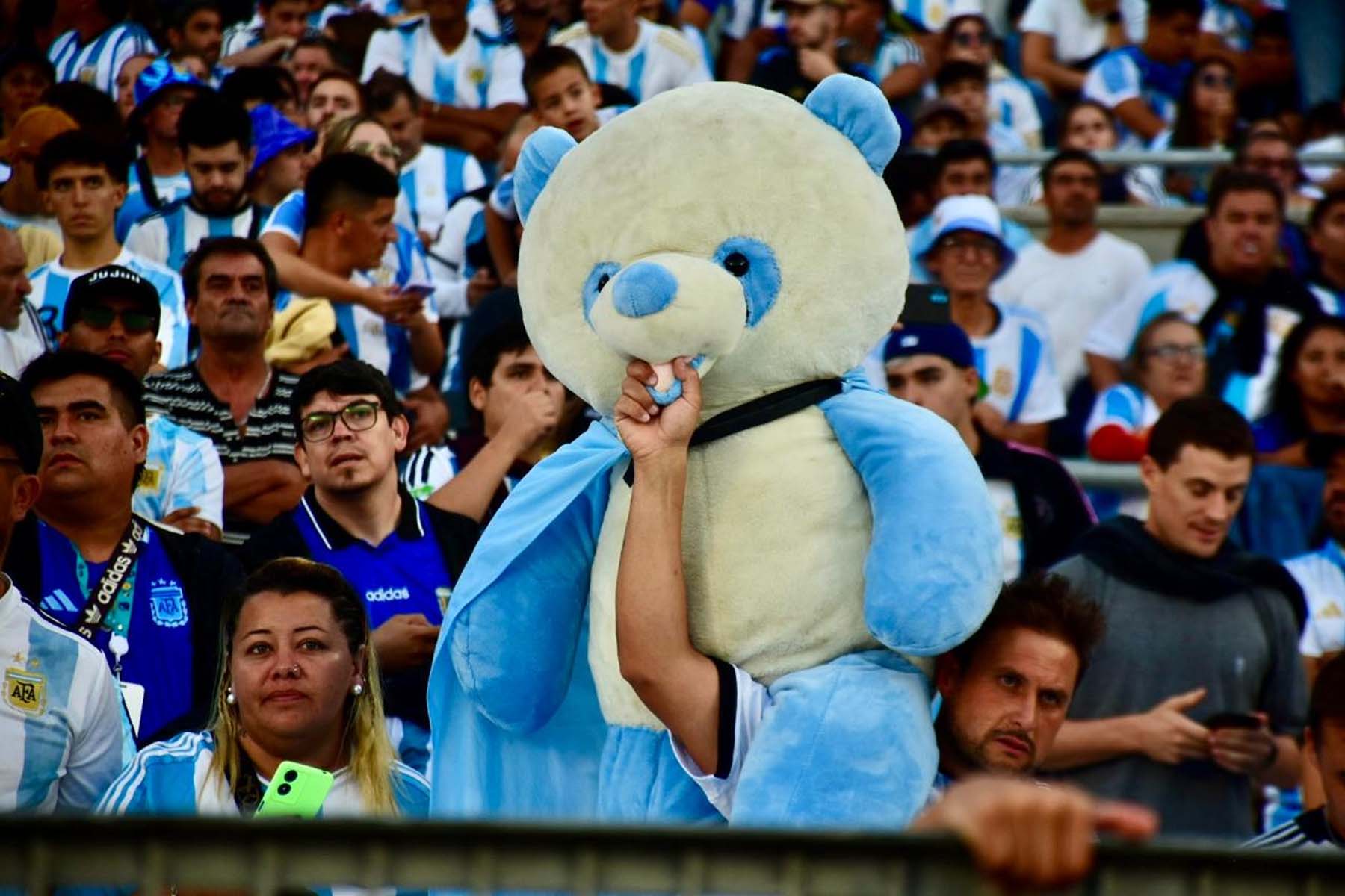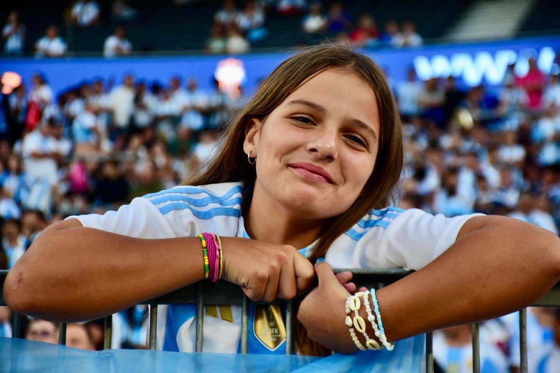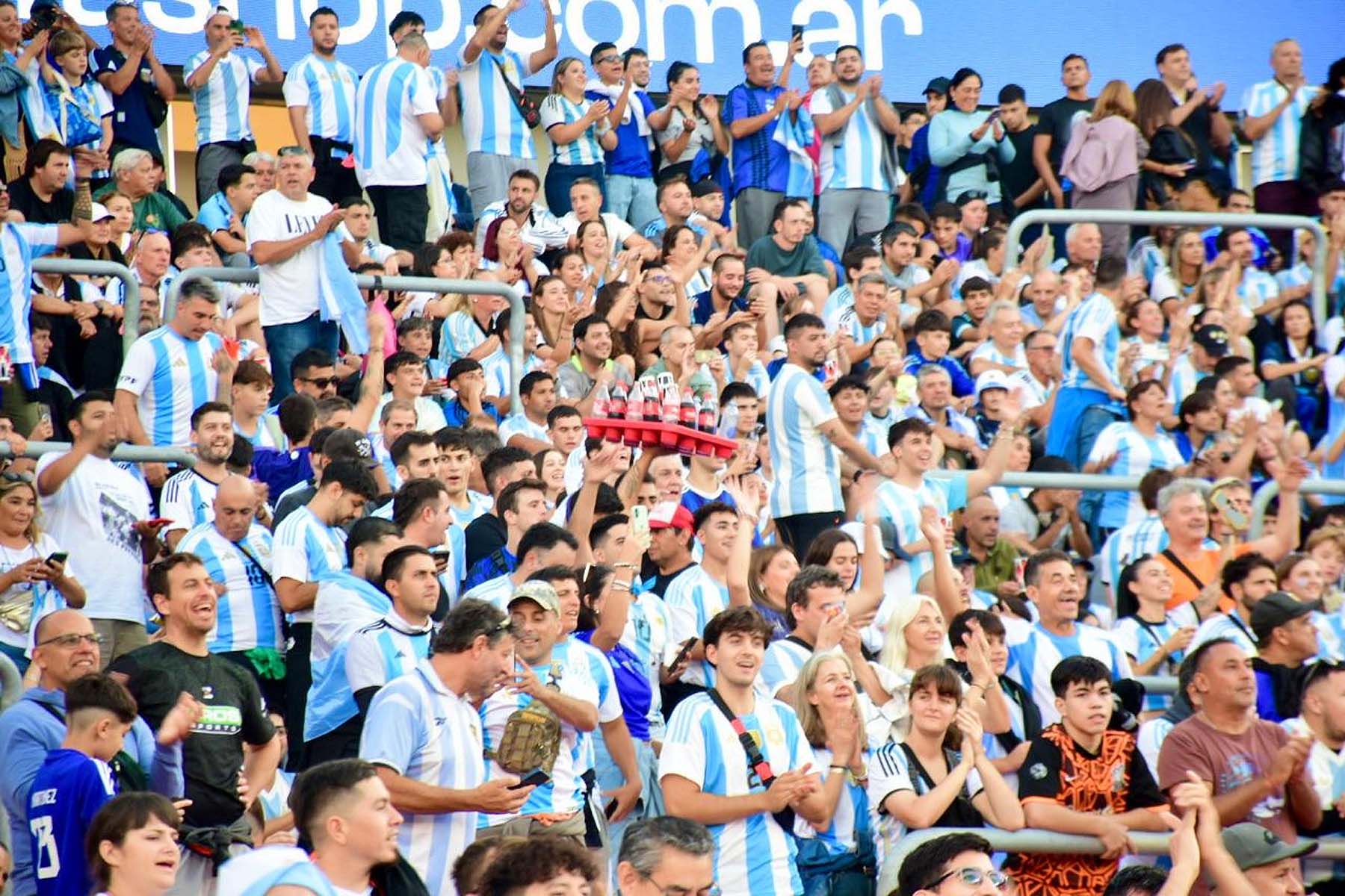 El celeste y blanco domina el color en el público con muchas camisetas de Julián Álvarez y Dibu Martínez, más allá de las de Lionel Messi que son amplia mayoría.