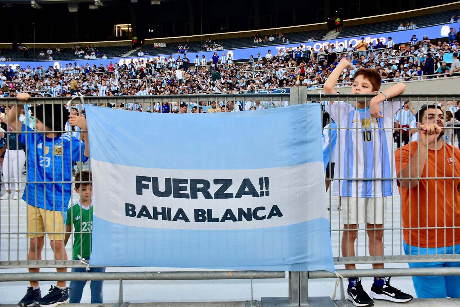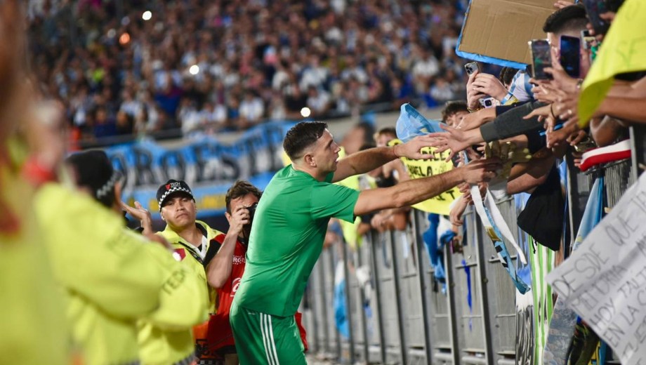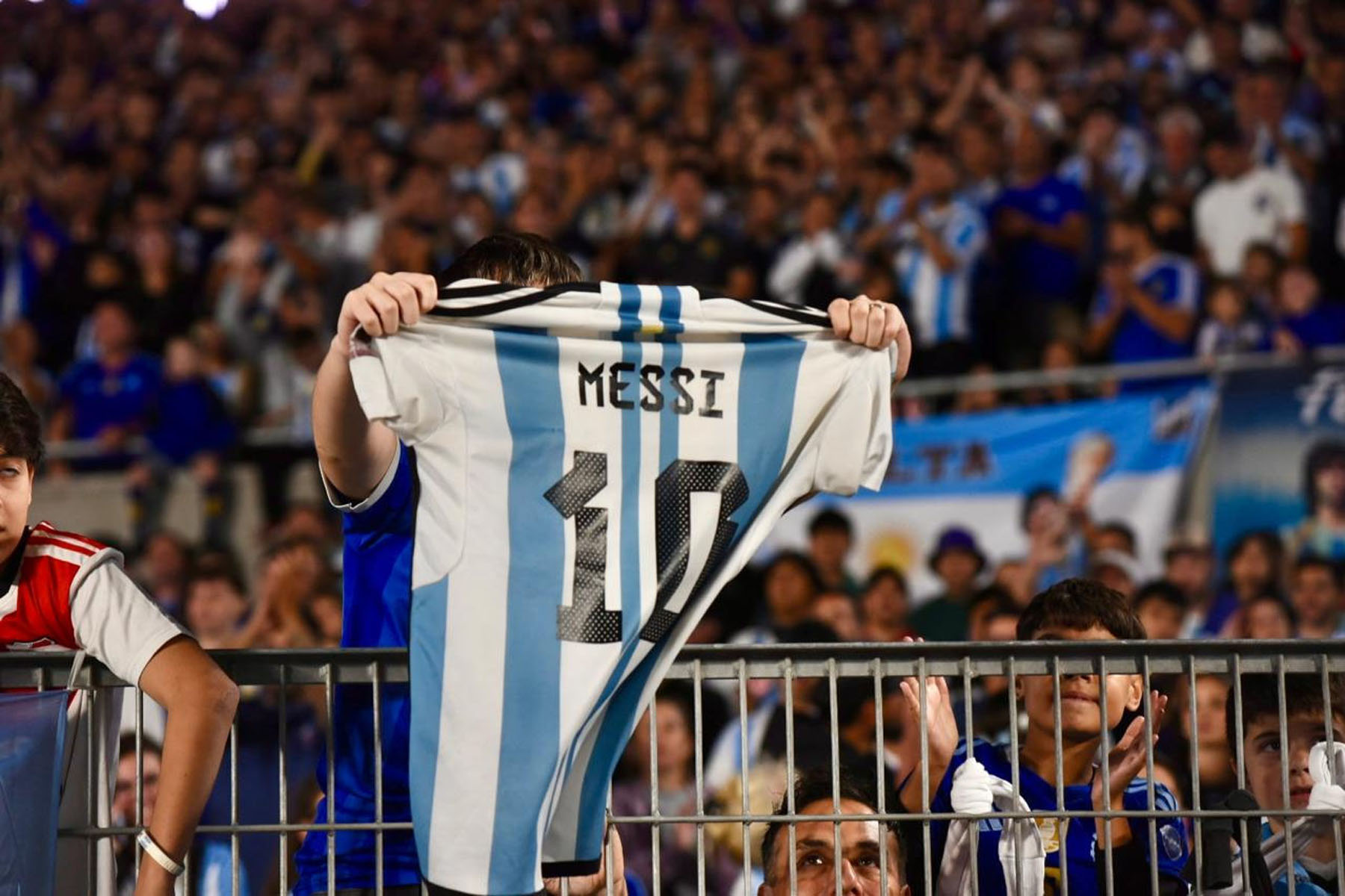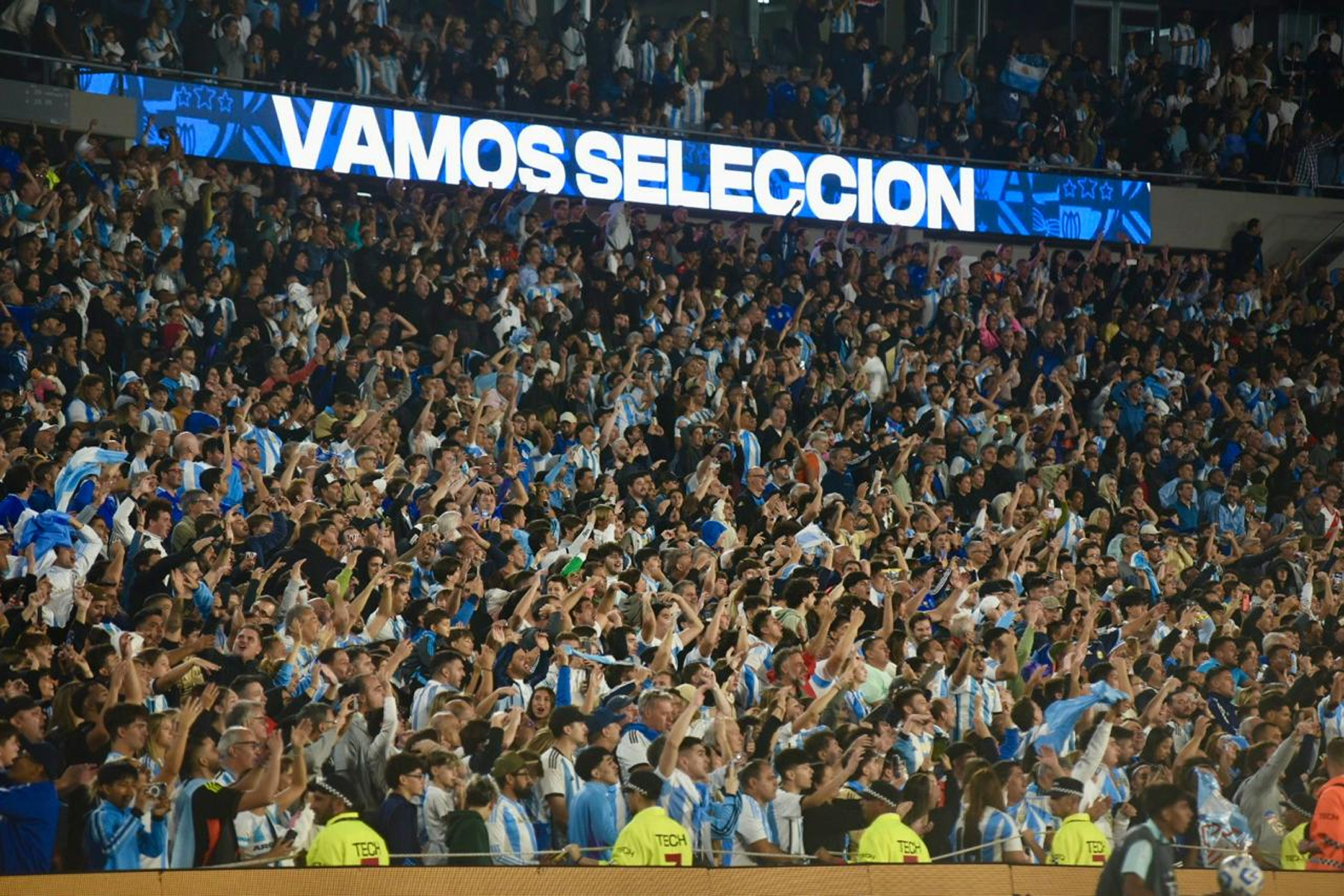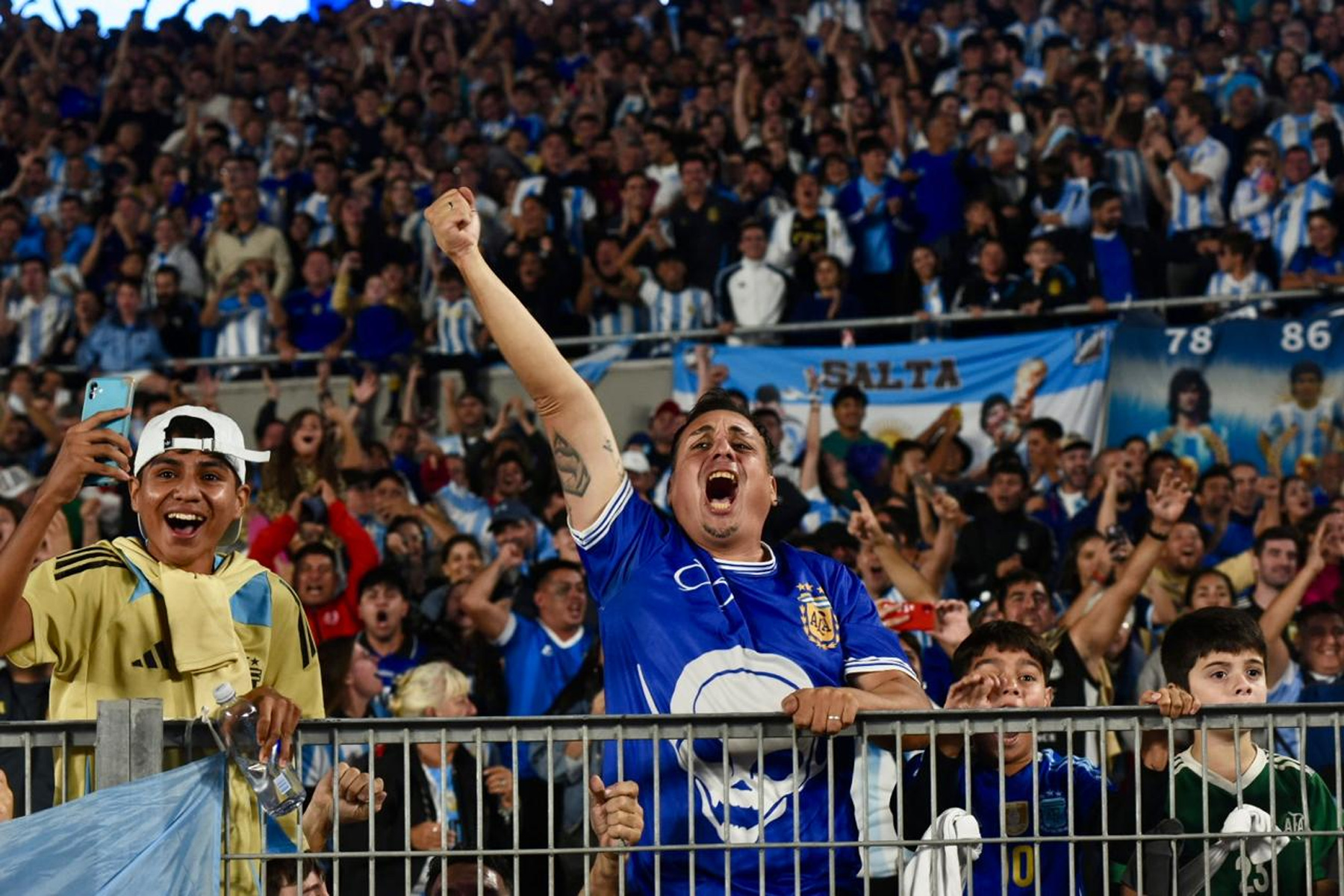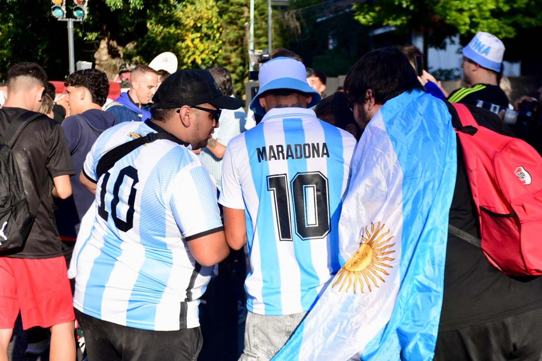 El celeste y blanco domina el color en el público con muchas camisetas de Julián Álvarez y Dibu Martínez, más allá de las de Lionel Messi que son amplia mayoría.
