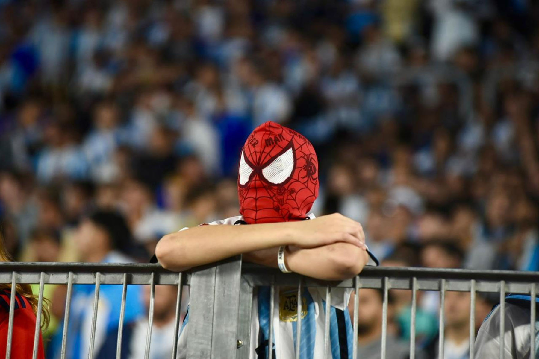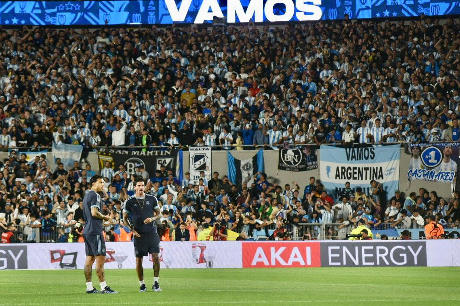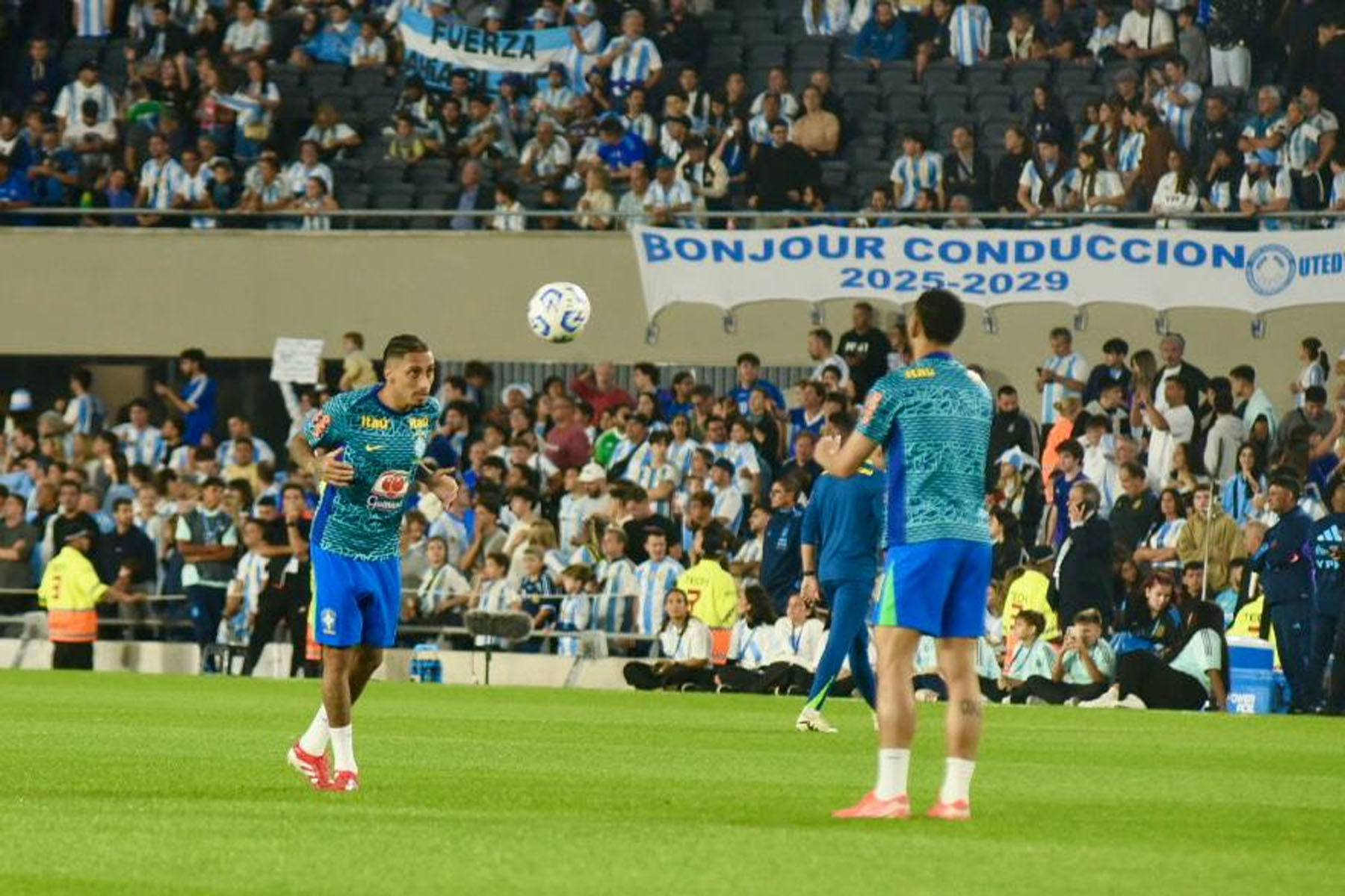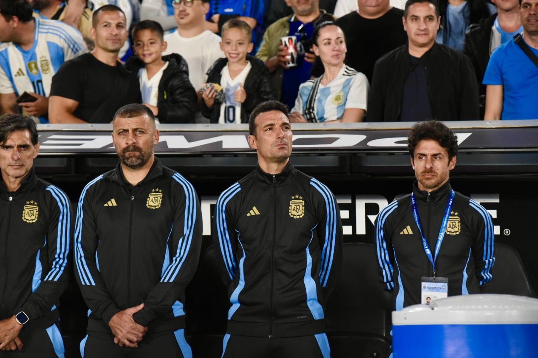 El celeste y blanco domina el color en el público con muchas camisetas de Julián Álvarez y Dibu Martínez, más allá de las de Lionel Messi que son amplia mayoría.