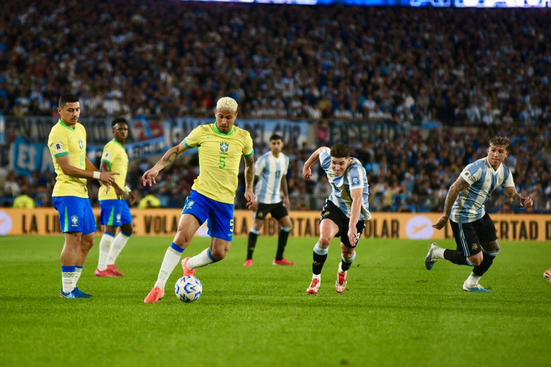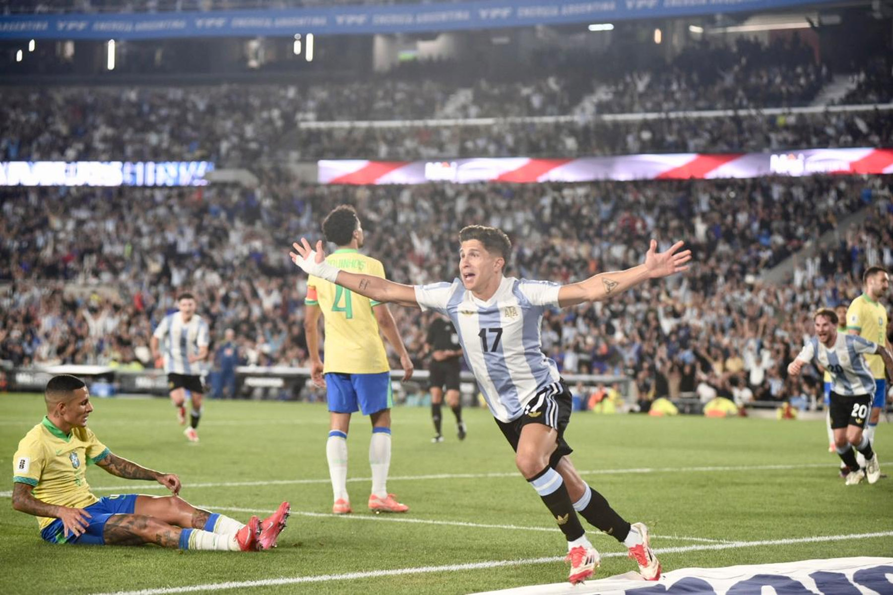 Argentina y Brasil protagonizaron un nuevo clásico sudamericano por las Eliminatorias al Mundial 2026 con una goleada 4 a 1 histórica en un estadio Monumental colmado de hinchas de la Albiceleste.