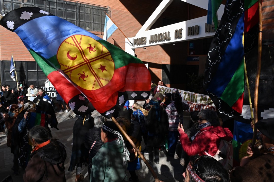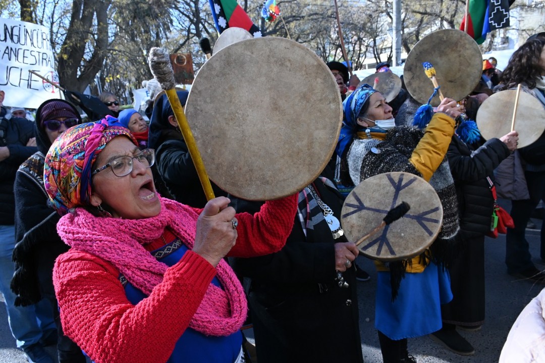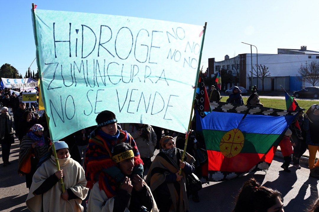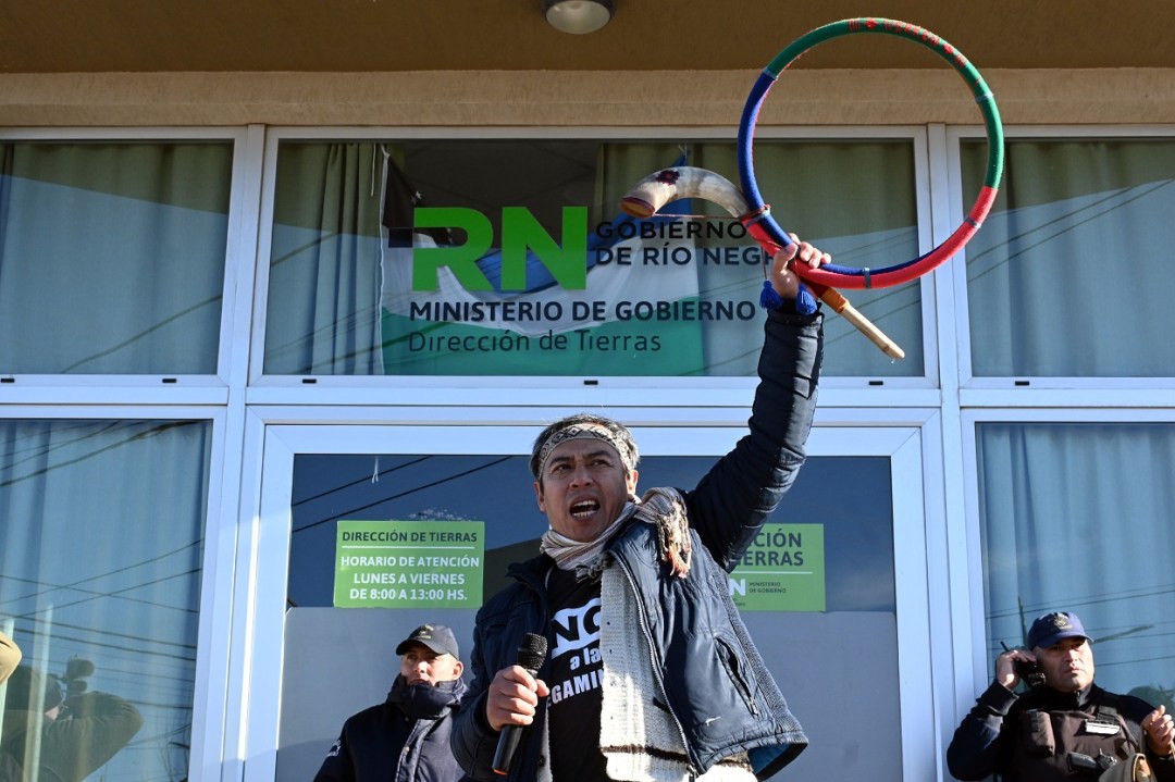 La convocatoria de la Coordinadora del Parlamento Mapuche Tehuelche de Río Negro reunió a referentes de distintas comunidades que marcharon este viernes por la capital provincial en reclamo a la intervención de la Justicia provincial en diferentes causas por la tenencia de tierras y el reconocimiento de los derechos de los pueblo originarios, como así también en contra de la cesión de lo que consideran territorio propio para llevar adelante el proyecto de hidrógeno verde.