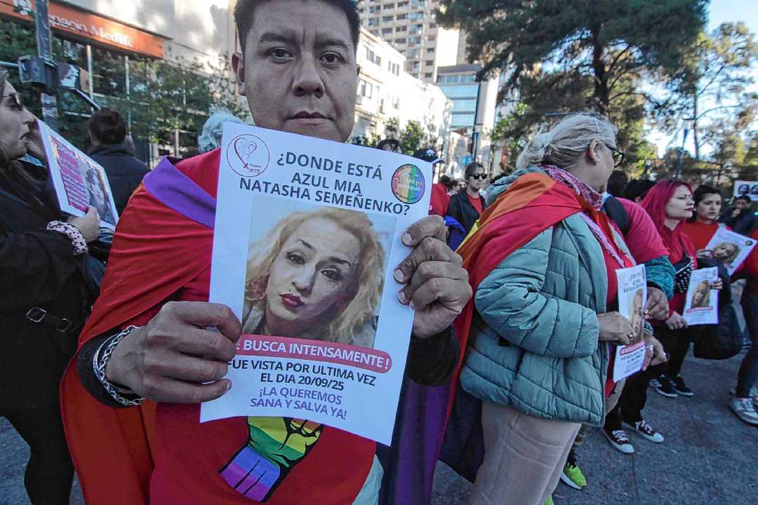 Con carteles, remeras intervenidas y el grito compartido de "Azul, te estamos buscando", decenas de personas se reunieron esta tarde en el Monumento a San Martín, en pleno centro de Neuquén capital, para reclamar la aparición con vida de Azul Mía Natasha Semeñenko, la mujer trans y trabajadora estatal desaparecida desde fines de septiembre.