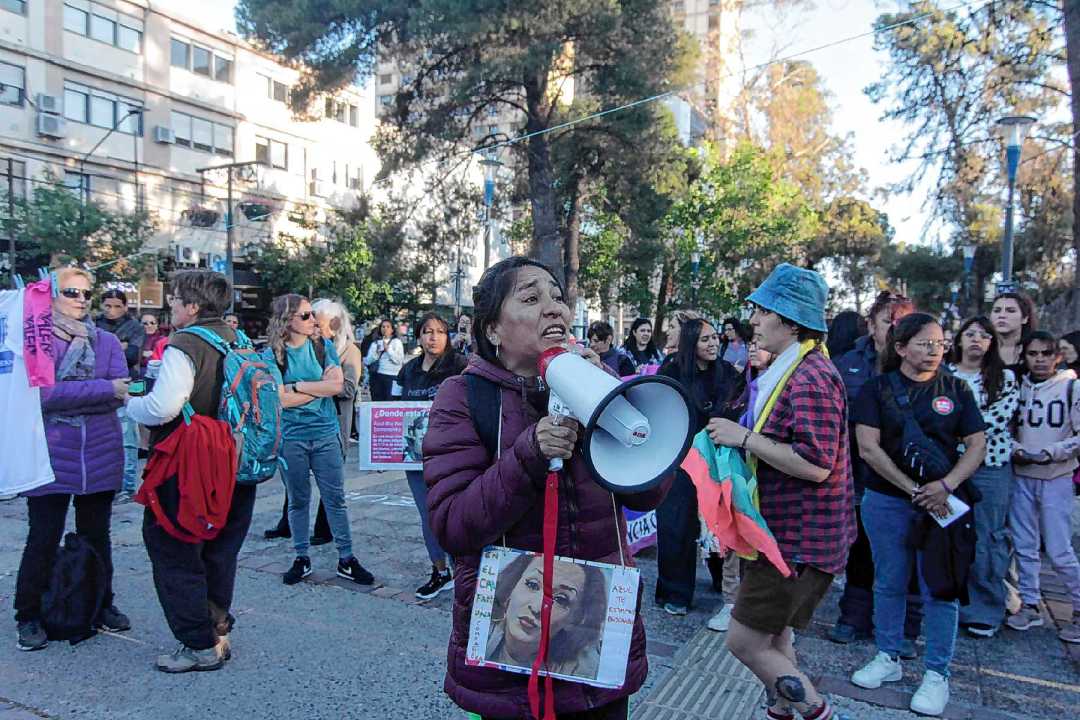 Familiares, amigas, compañeras y organizaciones se concentraron esta tarde en el Monumento a San Martín para exigir la aparición con vida de Azul Mía Natasha Semeñenko, la trabajadora estatal desaparecida en Neuquén.