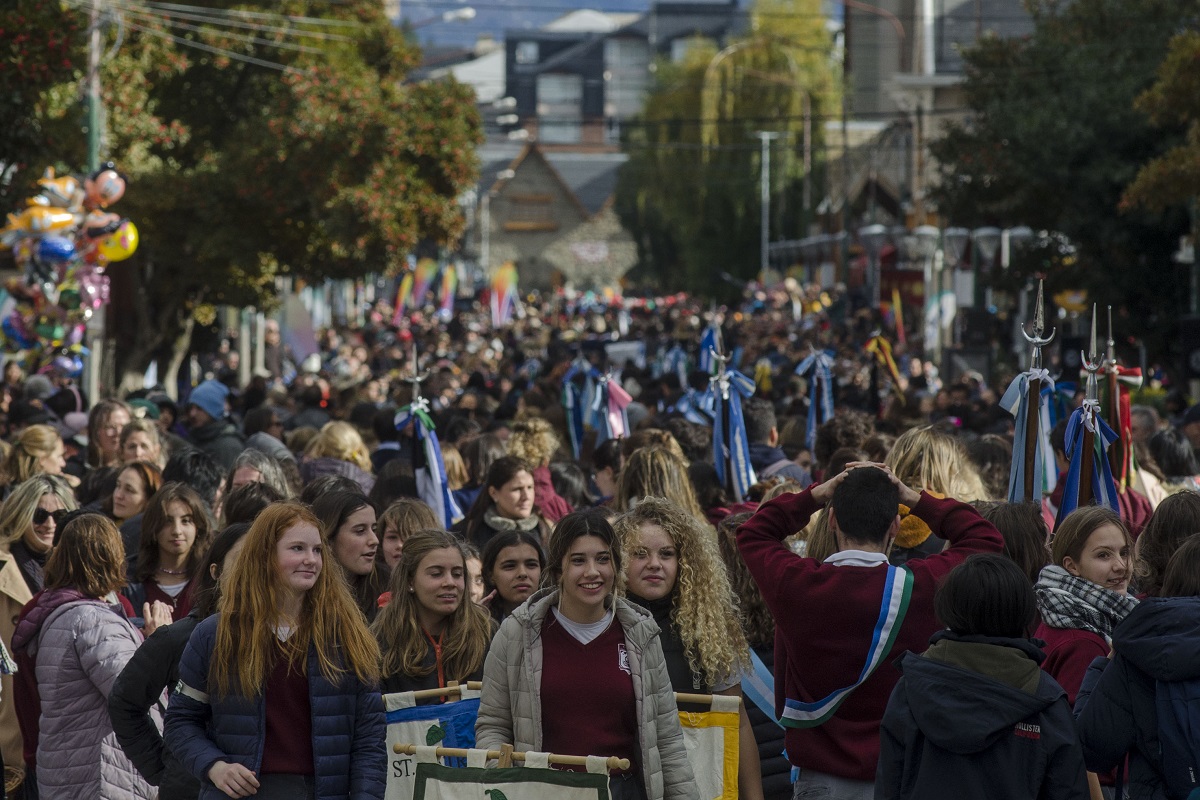 El día ayudó ya que atrás quedaron las bajísimas temperaturas. Los barilochenses desfilaron con 12 grados, un cielo completamente despejado y sol.