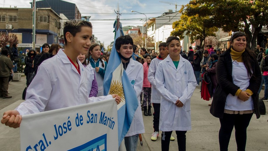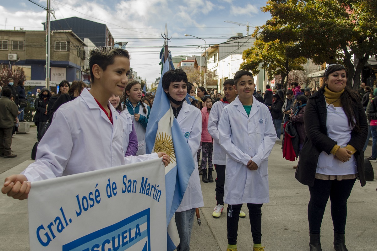 El desfile comenzó con la imagen de Nuestra Señora del Nahuel Huapi, patrona de Bariloche. La escuela 16, la primera de la ciudad, fue la que abrió el paso del resto de los colegios. «Es muy fuerte estar acá. Es algo muy lindo», dijo Cecilia, madre de Luis, un estudiantes de la Escuela Especial 6. La mujer se quebró en lágrimas por la emoción. Los representantes de la institución levantaron un cartel que decía: «Todo lo bueno empieza sin barreras».