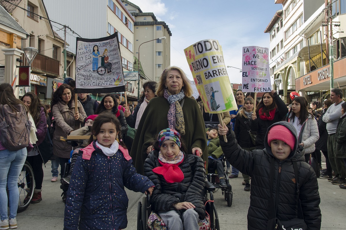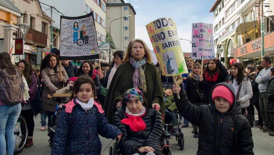 También desfilaron integrantes de la asociación civil Alas de Águila que pidieron por la sanción de la ley nacional de lengua de señas. «Es una lucha de la Confederación Argentina de Sordos. Río Negro tiene una ley pero el país no», alcanzó a decir Elsa Stopp, mientras un trabajador de Protección Civil le indicaba.