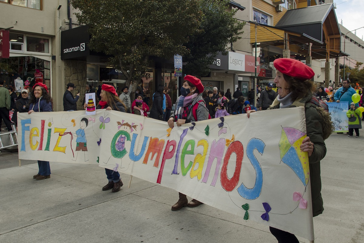 Alrededor de 120 instituciones participaron del tradicional desfile por el aniversario de Bariloche este martes que volvió a la calle Mitre. Escuelas públicas y privadas, centros de desarrollo infantil, organizaciones folclóricas y de scouts, centros de jubilados, gaiteros, comparsas, bomberos, militares, representantes de colectividades europeas, el círculo Chileno Gabriela Mistral y hasta los amantes de los perros salchichas y los usuarios indignados del transporte urbano hicieron su paso en el desfile por los 120 años de la ciudad.