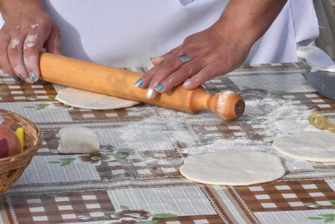 Para conseguir las tapas de empanadas, unos cortaban las masas con moldes y otros formaban “bollitos” perfectamente armados con la palma de la mano.
