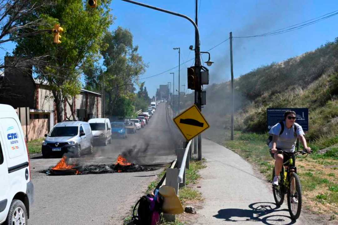 Los manifestantes del gremio estatal ATE, que encabeza Vicente, interrumpen totalmente el tránsito en los dos cruces entre la Capital provincial y el ciudad bonaerense, unos manifestantes están en el Puente Nuevo y el resto en el Viejo. Foto Marcelo Ochoa.