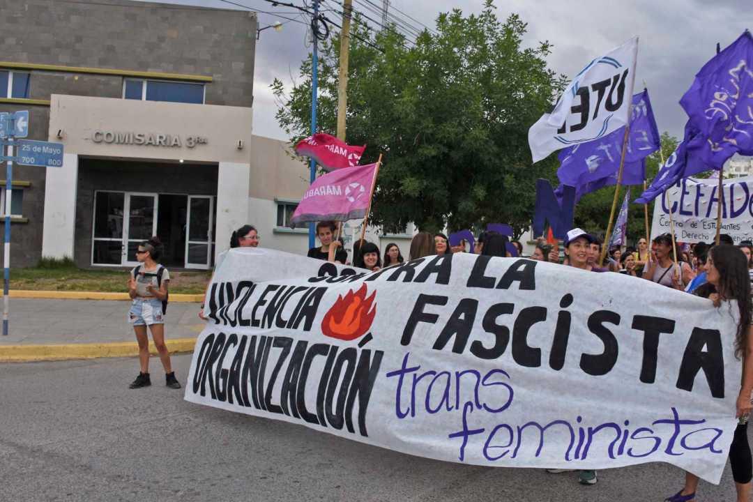 La columna estuvo encabezada por una bandera en la que se podía leer: «Contra la violencia fascista organización transfeminista».