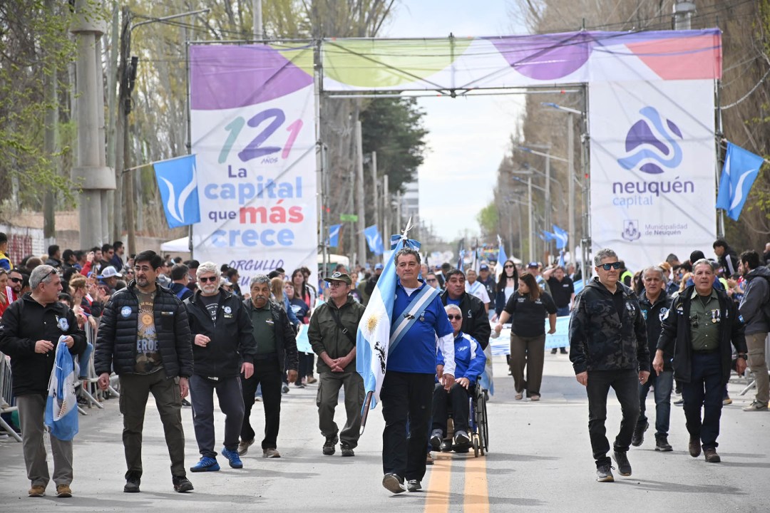 Neuquén capital cumple 121 años y el mítico desfile cívico-militar se llevo a cabo en el este de la ciudad en esta oportunidad. Pese a que el clima por momentos no acompañó, unas 25 mil personas participaron de los festejos este sábado.