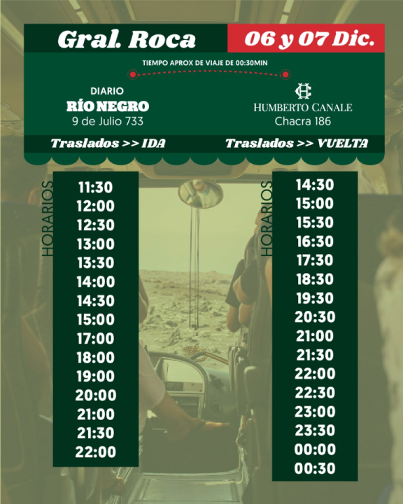 Para que nadie se quede afuera, Diario RÍO NEGRO ofrece traslados gratuitos durante todo el fin de semana.
