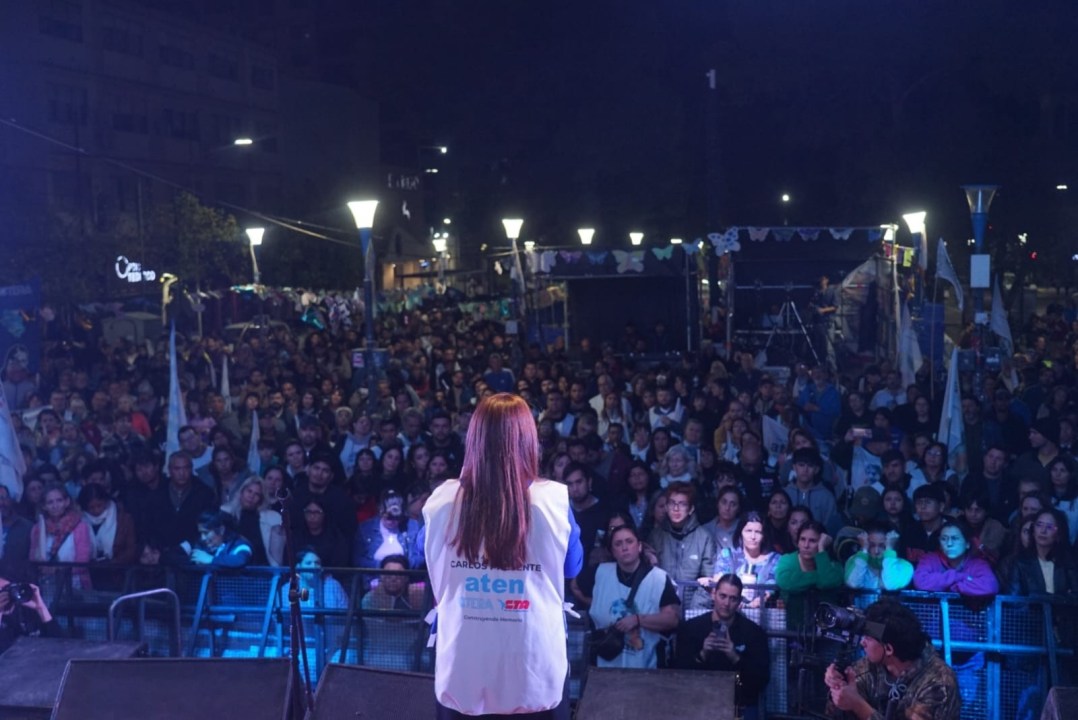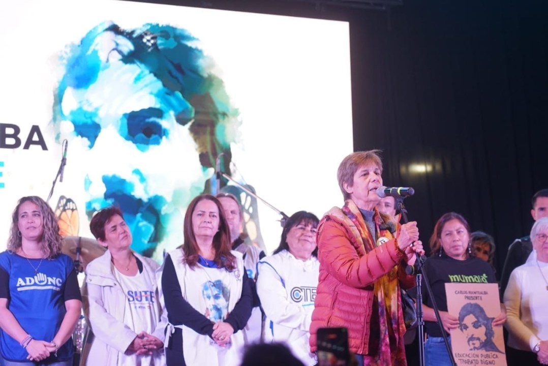 La dirigente cerró el acto que se hizo en el monumento a San Martín, en donde se montó un escenario en el que también intervinieron otros referentes gremiales y activistas por los derechos humanos.