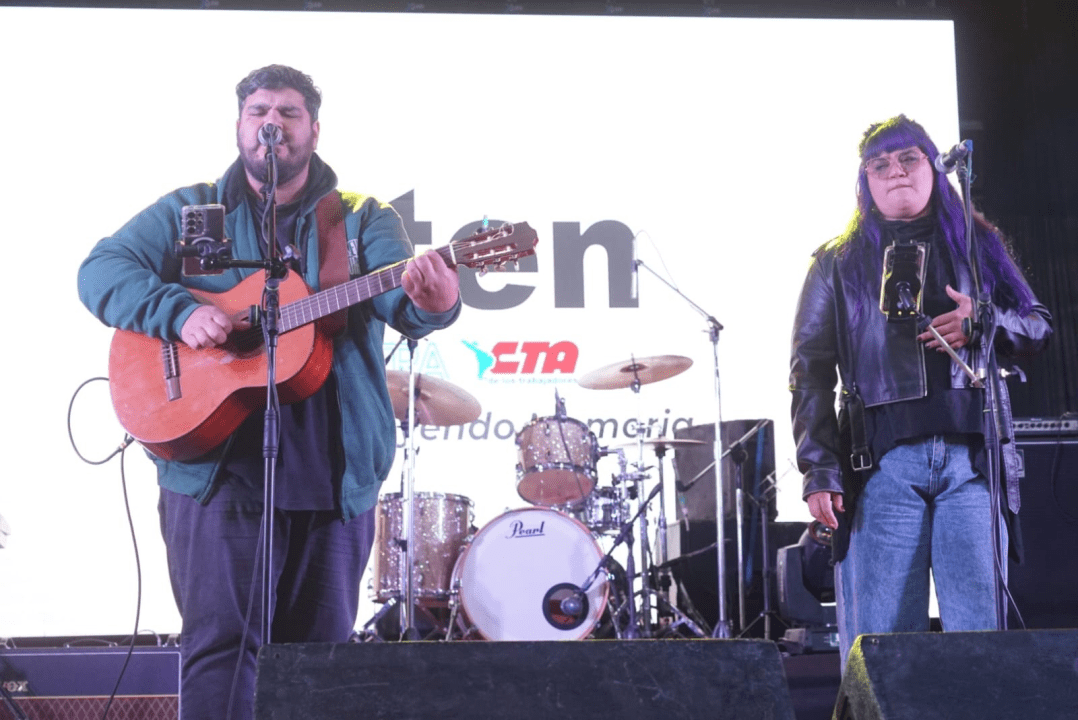 Junto a otras organizaciones sindicales, políticas y estudiantiles, ATEN se movilizó en el centro de la capital neuquina en un nuevo aniversario del crimen del docente. Iván Noble participó de los shows para homenajear a Fuentealba.