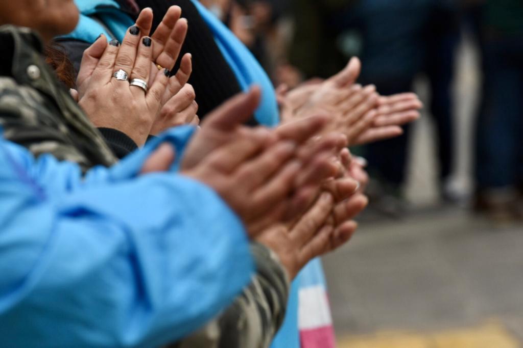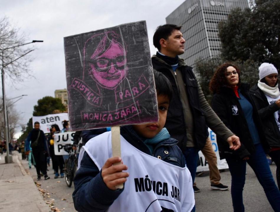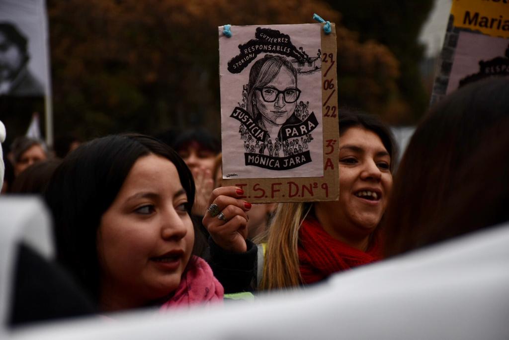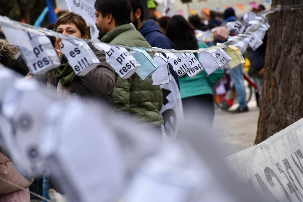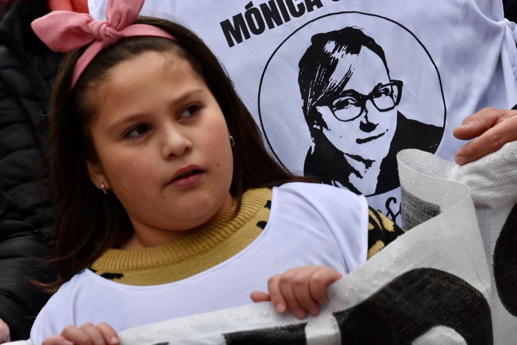 “Justicia para Mónica, Nicolás y Mariano. Escuelas y edificios públicos seguros”, es la consigna que se repite durante la marcha. Además se reclama desde los parlantes: “Celeridad, justicia y que se condene a los responsables”.