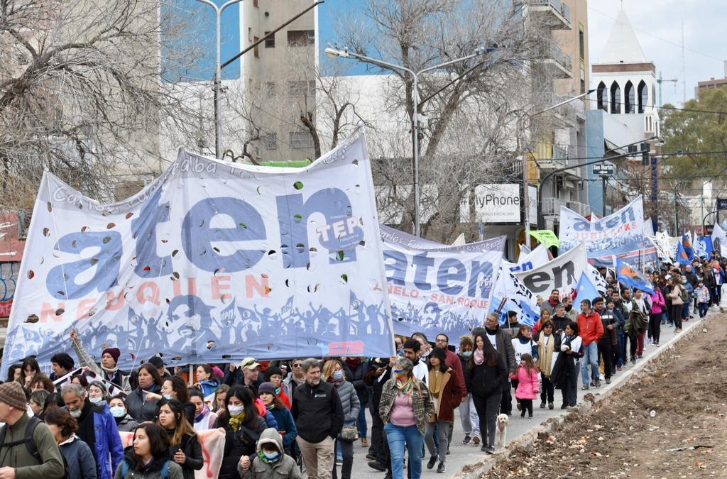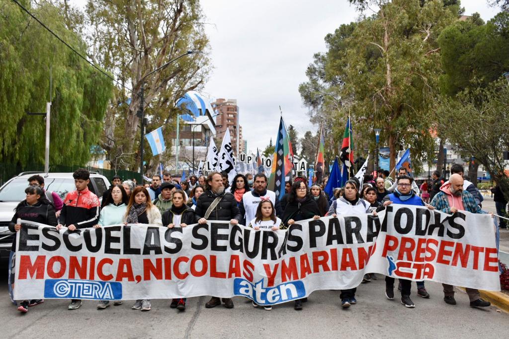 Según informó ATEN hay 15.000 personas que se manifiestan por las calles de Neuquén para exigir justica a un año de la explosión de la escuela de Aguada San Roque. Por la explosión, perdieron la vida los operarios Nicolás Francés y Mariano Spinedi, y la docente Mónica Jara.