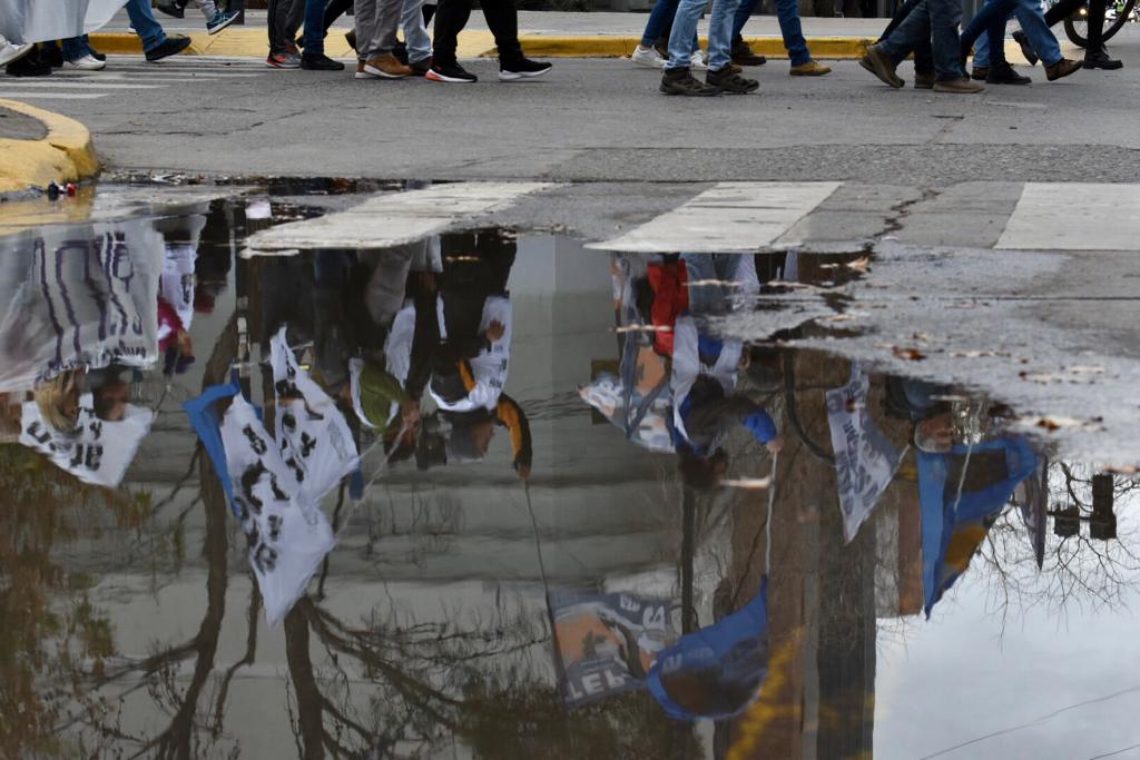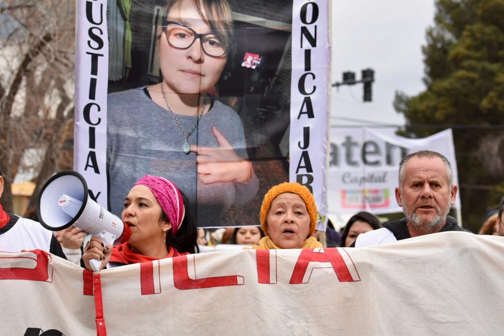 Al cumplirse un año de la explosión en la escuela de Aguada San Roque se movilizan por el centro de Neuquén reclamando Justicia por las tres víctimas fatales, gremios de Neuquén y vecinos. Fotos de Matías Subat.
