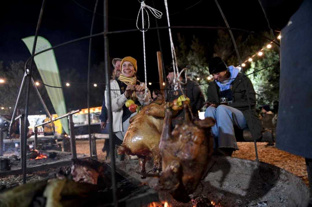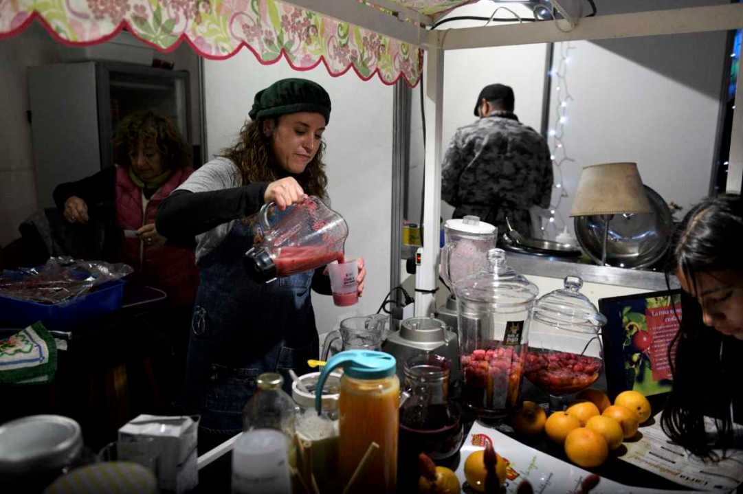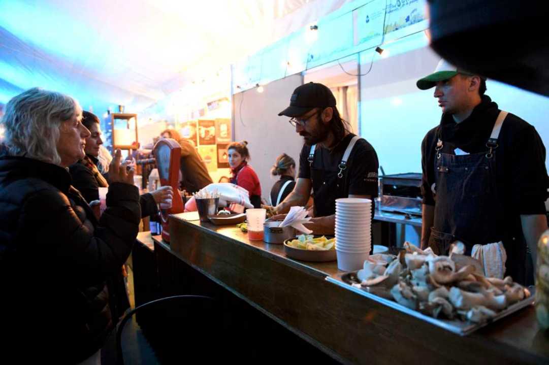 El área de los fuegos siempre convoca: el imán atávico que nos ejercen esas llamas y brasas encendidas más esos asados crocantes que prometen un sandwich inolvidable. Pese a la tensión que viven los cocineros y cocineras durante toda la fiesta los momentos de diversión y risas también abundan. Acá se ve a Martín Mosqueira, de Zapala, haciendo bromas a sus colegas.Desde Ruca Choroy vinieron con sus artesanías súper valoradas por locales y turistas.La pasión cervecera exige que los mejores hacedores de cerveza de la región estén presentes.Lo frutal, imprescindible en cualquier evento gastronómico que se realice. A templarse un ratito… Caliva de Neuquén capital, Páez de La Angostura y Sepúlveda de Chos Malal. El folklore y el tango convocaron la primera noche de la fiesta. Este sábado será el rock.