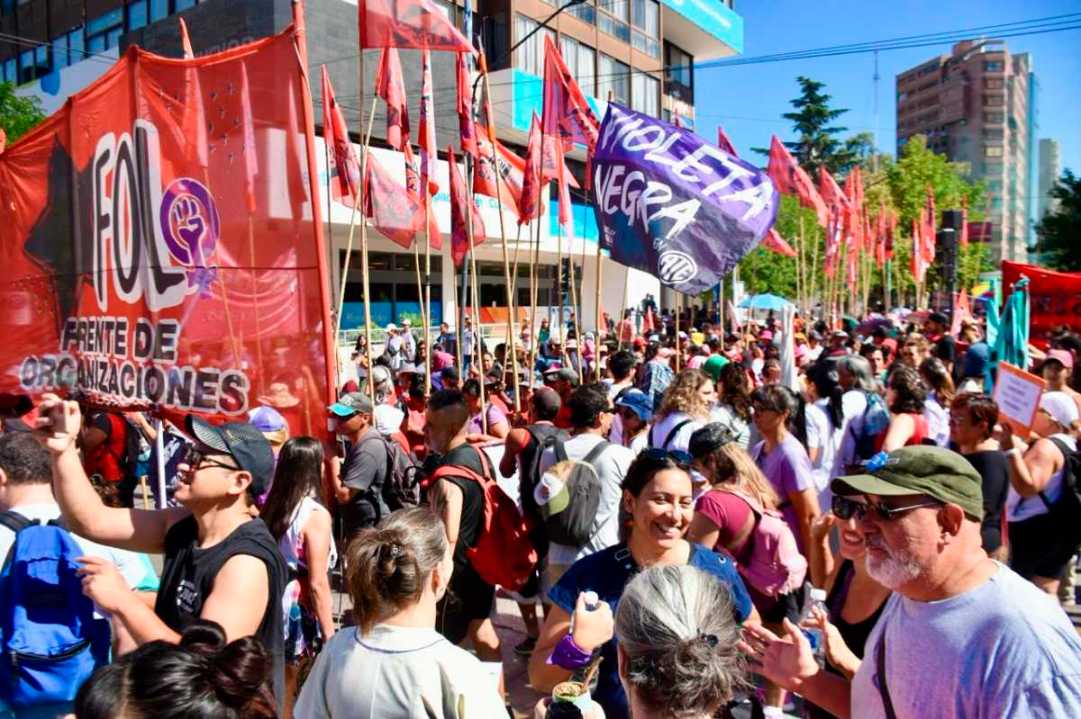 La movilización que se extendió por varias cuadras finalizó con la lectura de un documento, en el monumento a San Martín. El rechazo a la Ley Ómnibus y al DNU de desregulación económica, principal eje de la medida.