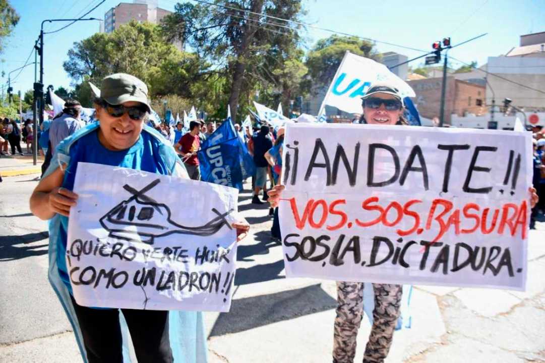 Junto a los sindicatos, las organizaciones y los trabajadores estatales, también se sumaron estudiantes y vecinos, que colmaron la calle y parte del cantero central. Al llegar a Sarmiento, la manifestación giró hacia La Pampa y de ahí a la actual avenida Mosconi.