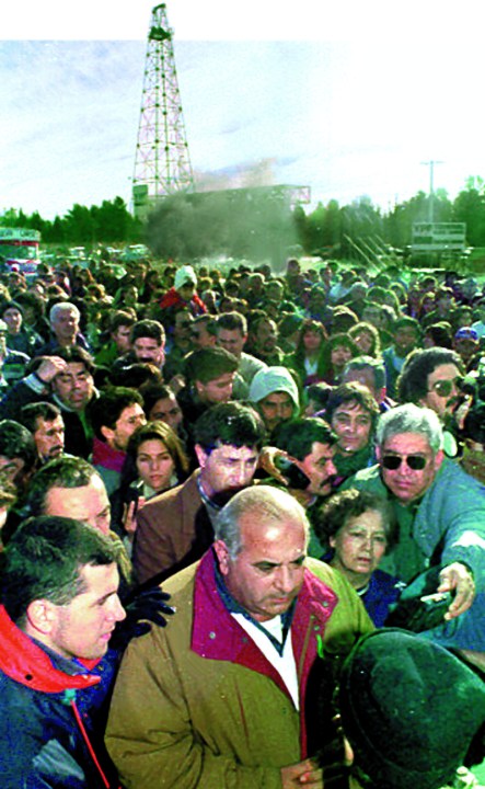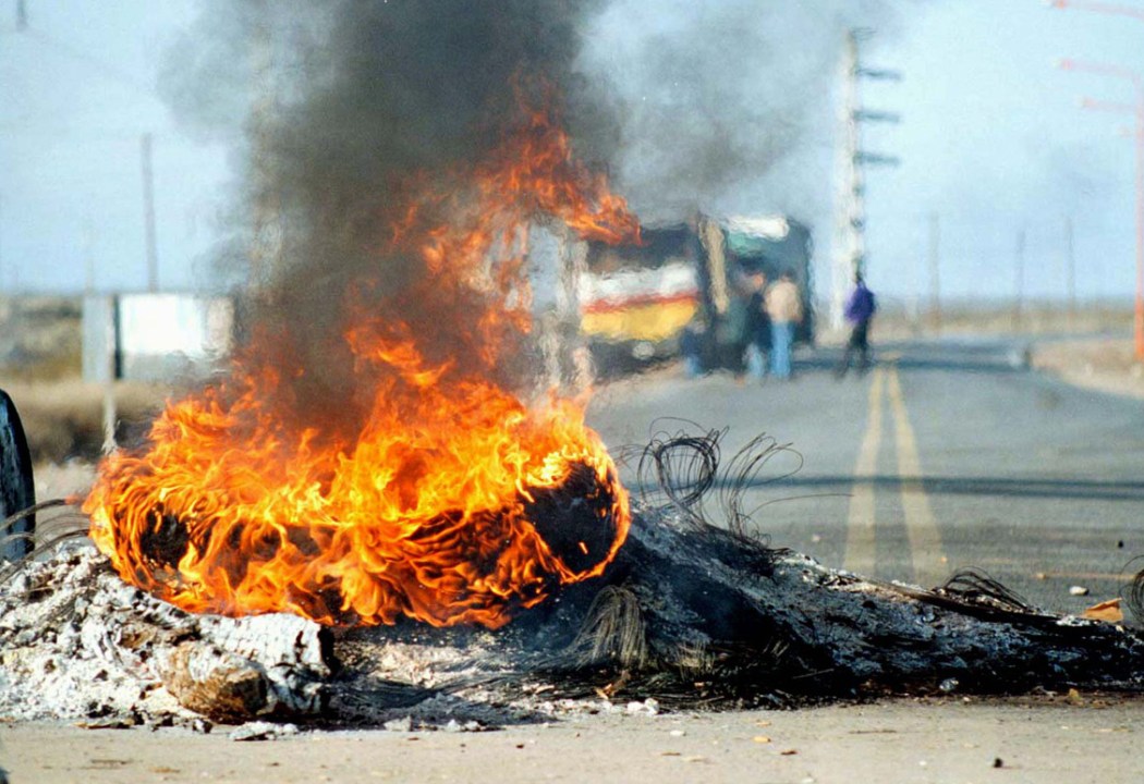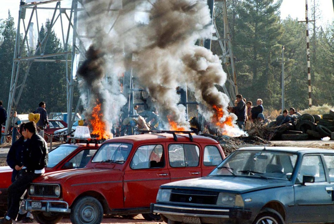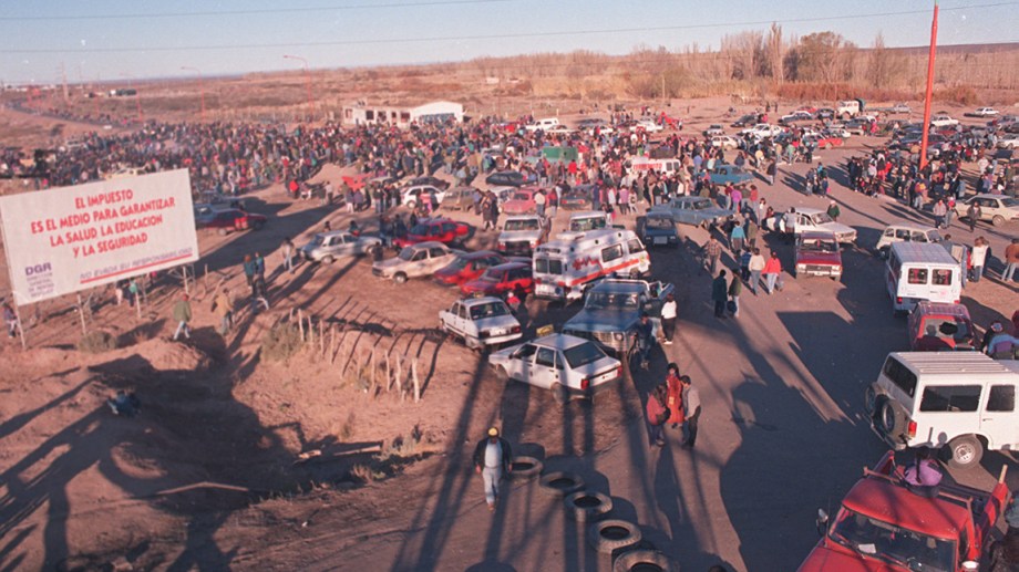 La privatización de YPF y los despidos dieron comienzo a la pueblada. Foto: Archivo Río NegroMuy jóvenes entonces, adultos ahora. Foto: Archivo Río NegroFoto: Archivo Río NegroFoto: Archivo Río NegroSe comenzaba con una nueva modalidad de reclamo que luego se extendió por todo el país. Foto: Archivo Río NegroLa torre de Plaza Huincul, con el panorama de la protesta. Foto: Archivo Río NegroCasi una semana duraron los piquetes en las rutas de la comarca petrolera. Foto: Archivo Río NegroEl entonces intendente de Plaza Huincul Alberto «Tucho» Pérez escucha a los manifestantes. Foto: Archivo Río NegroLas postales de la Ruta 22 en esos días eran de humo y furia. Foto: Archivo Río NegroUna de las imágenes más icónicas de la pueblada. Foto: Archivo Río NegroLa jueza federal Margarita Gudiño comunica la multitud que se declara incompetente. Foto: Archivo Río Negro Gendarmes listos para reprimir. Foto: Archivo Río NegroUna de las imágenes icónicas de la protesta social. Foto: Archivo Río NegroUn piquetero con muletas es reprimido con chorros de un camión hidrante. Foto: Archivo Río NegroMedios nacionales también cubrieron la pueblada. Foto: Archivo Río NegroUn manifestante cae afectado por los gases lacrimógenos. Foto: Archivo Río NegroLiberan al único detenido durante las manifestaciones. Foto: Archivo Río NegroFoto: Archivo Río NegroFoto: Archivo Río NegroFoto: Archivo Río NegroEl gobernador Felipe Sapag y Laura Padilla firman el petitorio de 13 puntos para terminar con los piquetes. Foto: Archivo Río NegroUna manifestante lee el acuerdo a los vecinos apostados en el piquete. Foto: Archivo Río NegroEscenas de júbilo luego de que se anunciara el acuerdo. Foto: Archivo Río NegroPiqueteros sacan los escombros que bloqueaban la ruta. Foto: Archivo Río NegroManifestantes saludan a los camioneros luego de levantar el piquete. Foto: Archivo Río Negro