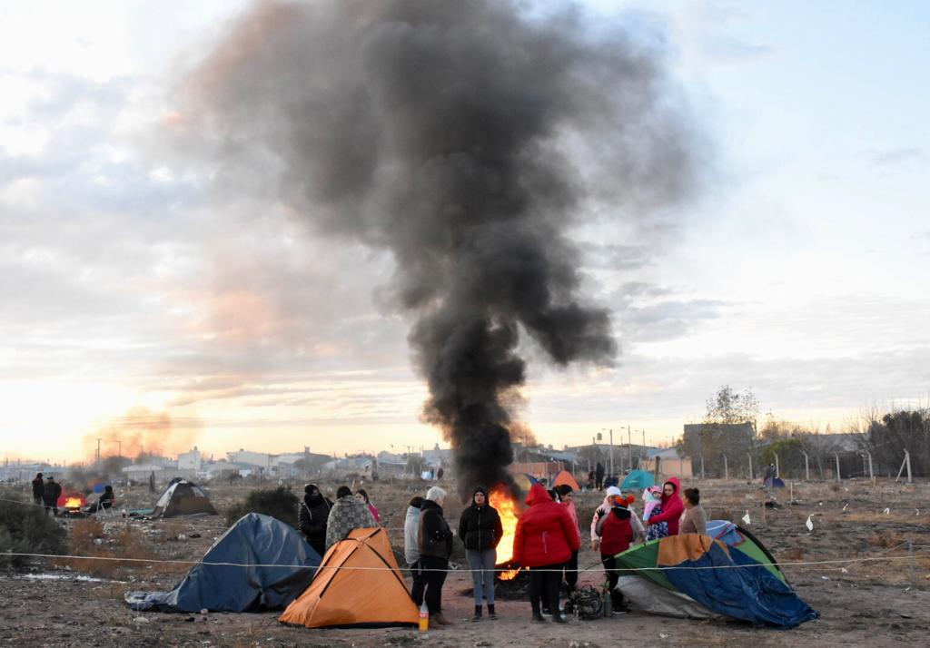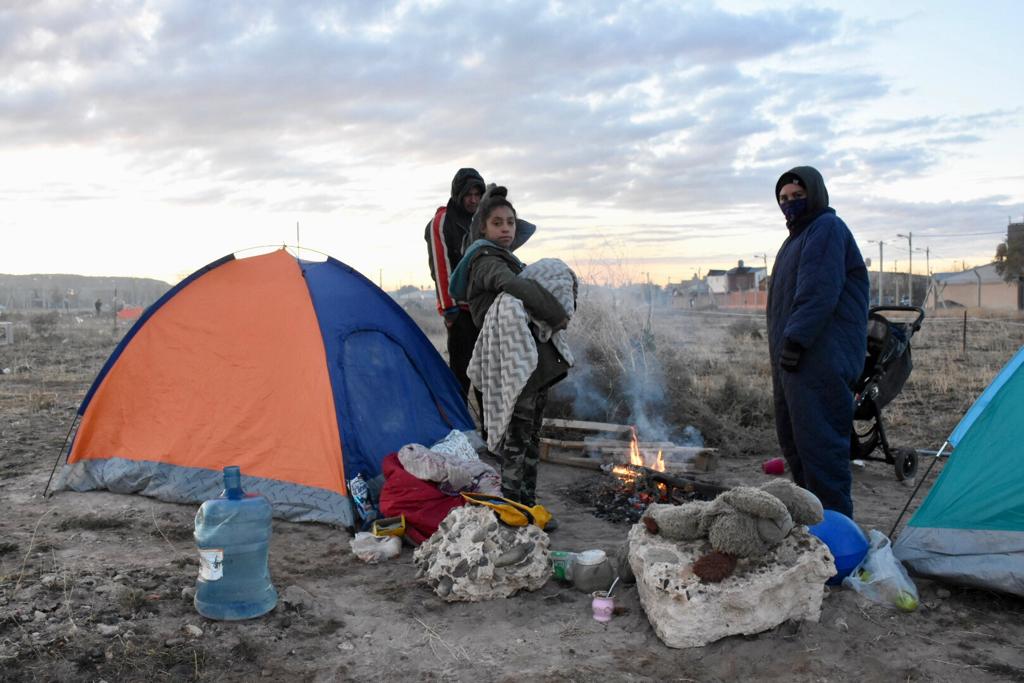 Unas 80 familias participan de la toma iniciada ayer en un sector del oeste de la capital neuquina. Aseguran que el Instituto Provincial de Viviendas y Urbanismo (IPVU) debe viviendas y lotes hace dos años. La policía no deja ingresar comida, leña y abrigo.