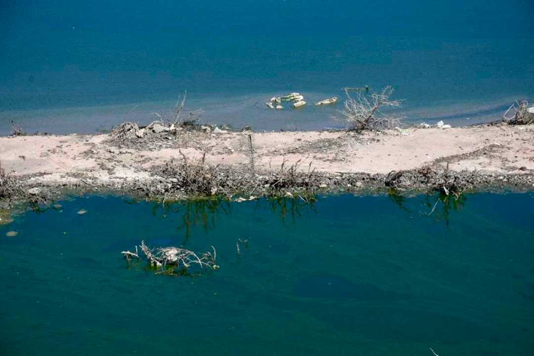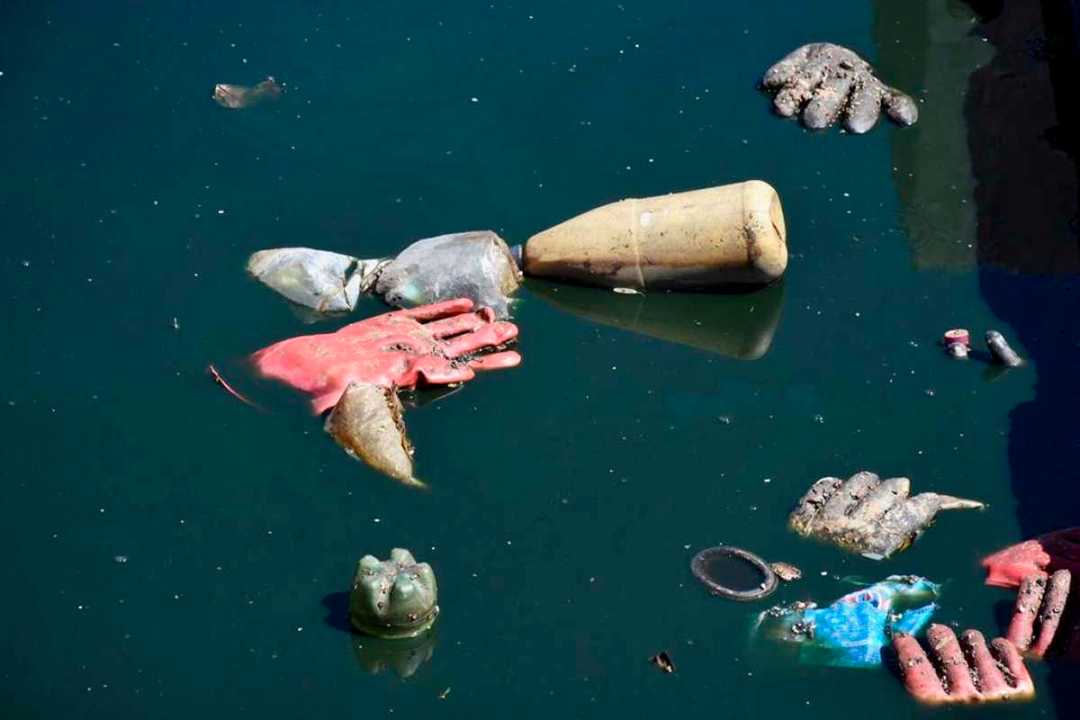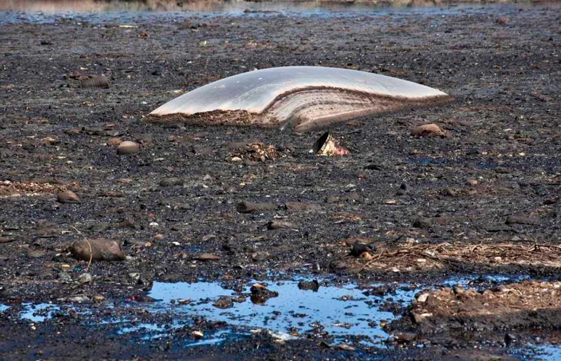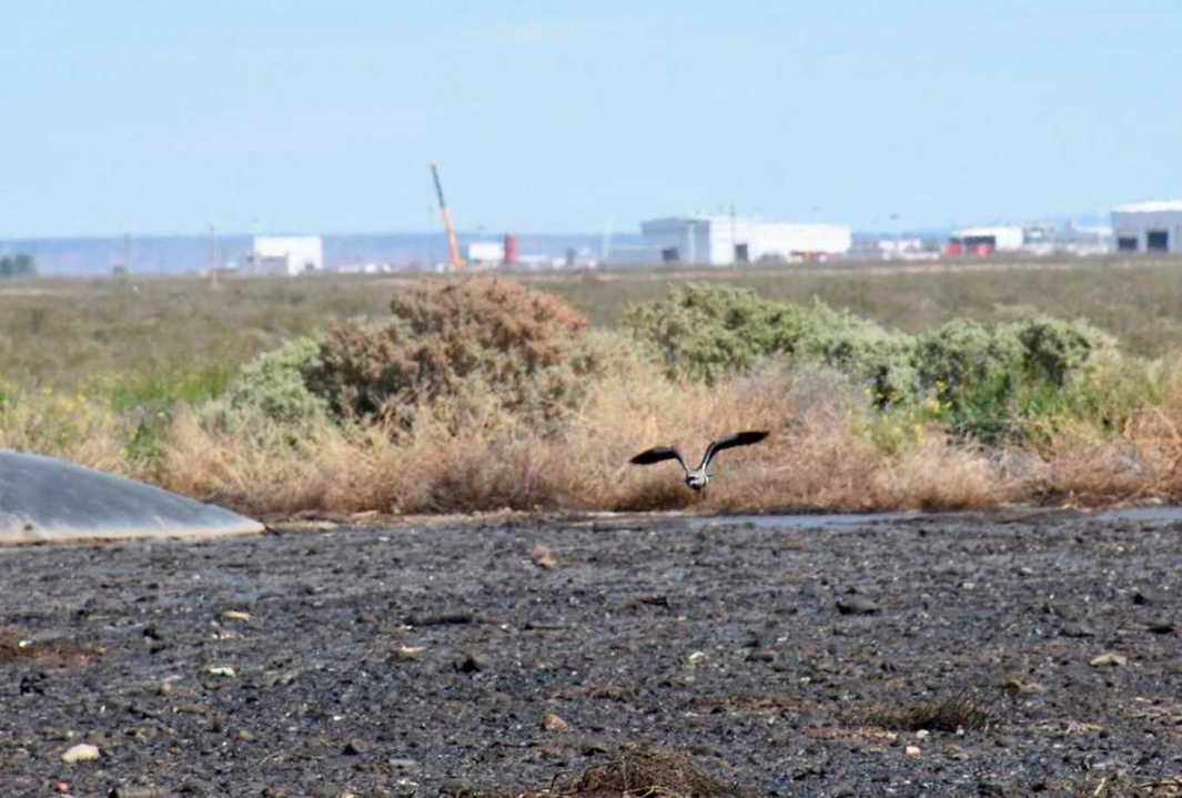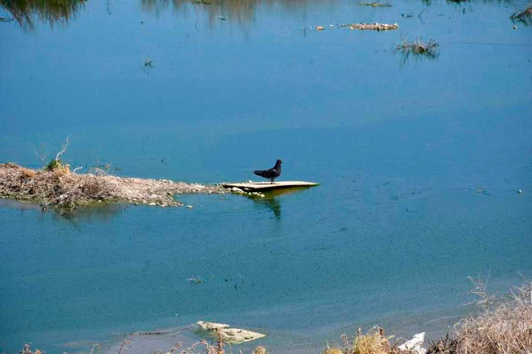 A pesar del hedor a cloaca e hidrocarburo, los pájaros revolotean sobre la basura y los restos que sobresalen del líquido color negro y verde petróleo.