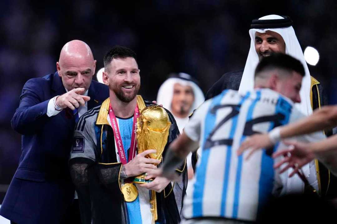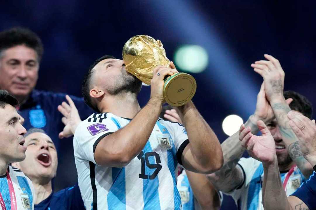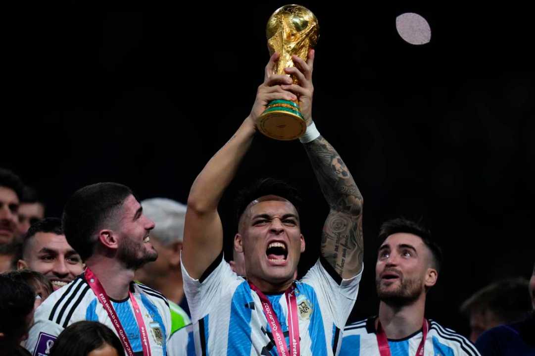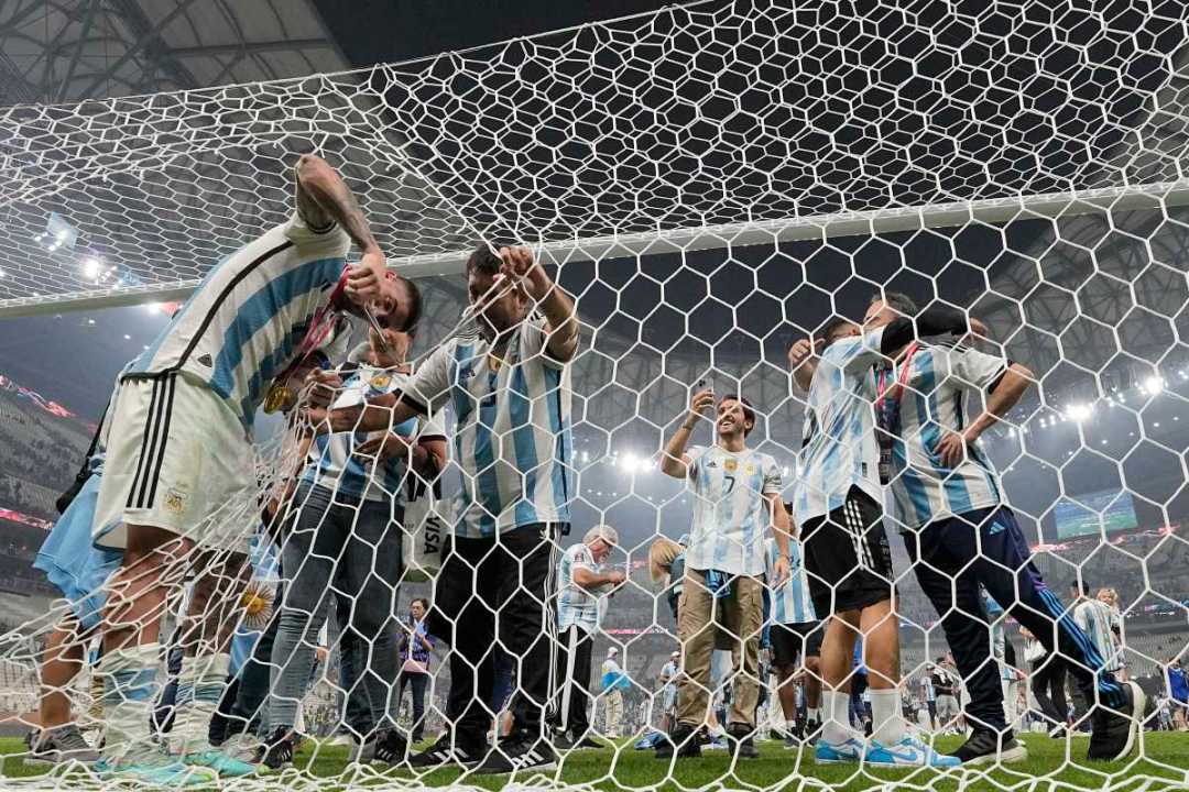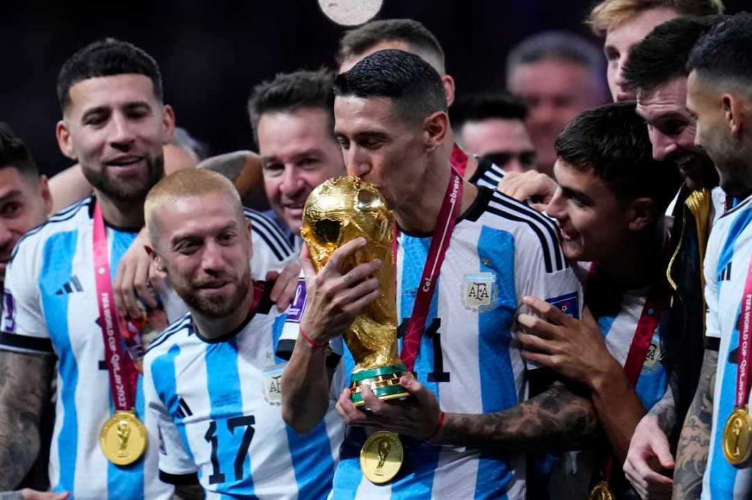 La alegría recorre cada punto del país y el planeta, y así lo será por mucho tiempo. Te mostramos en fotos el festejo de los jugadores de la selección junto a la Copa del Mundo al ganar el Mundial Qatar 2022. Fotos AP