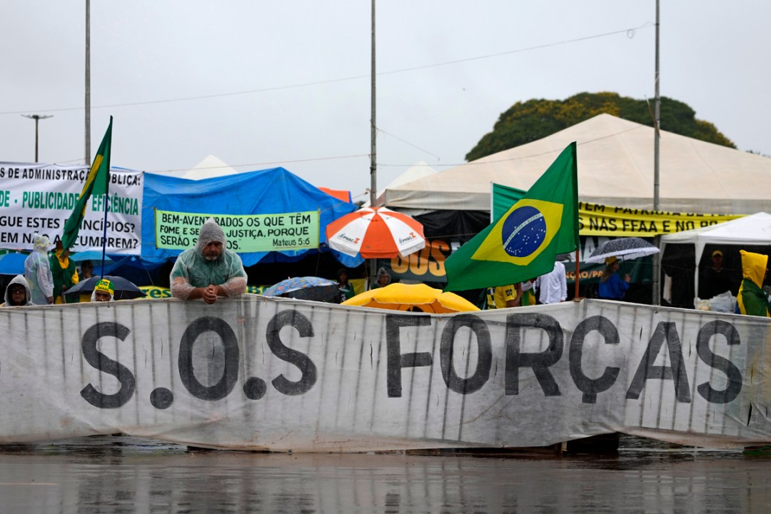 Fanáticos bolsonaristas montaron un enorme campamento, con equipos electrógenos y ristras de luces donde seguidores del presidente saliente alientan a un «golpe de Estado”.