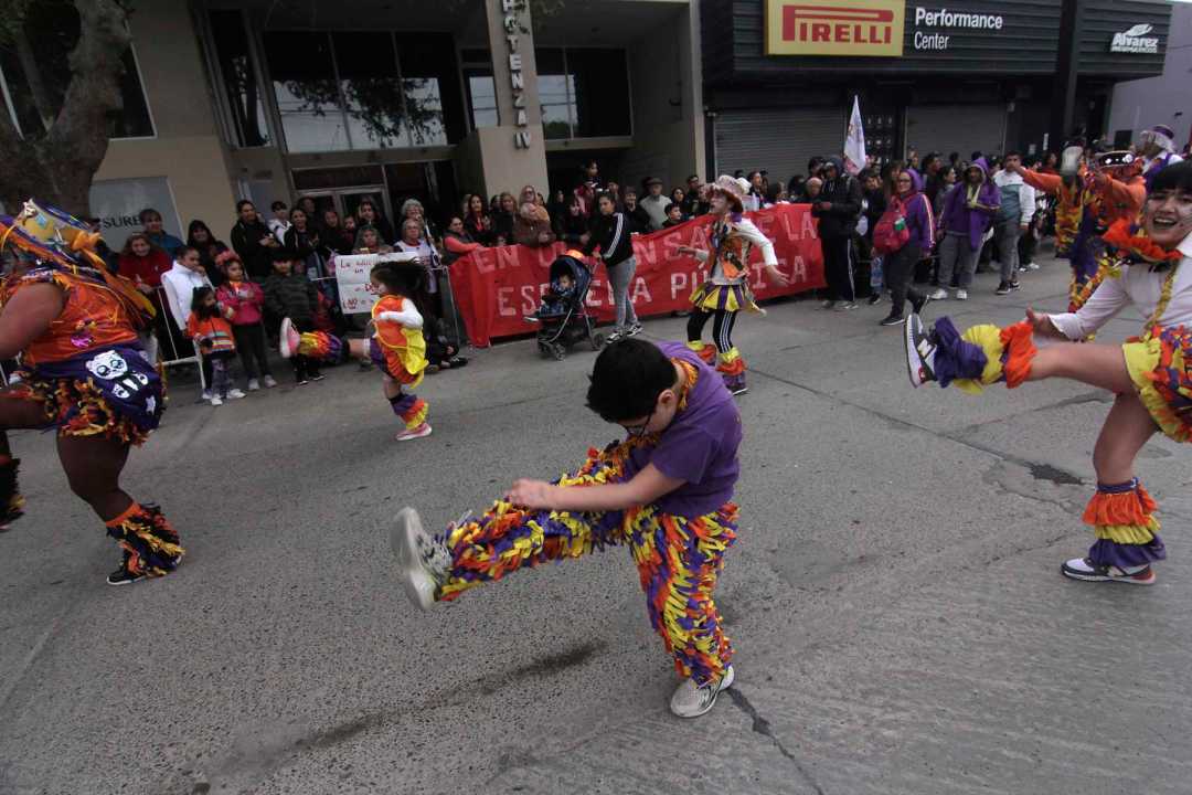 El día se mantuvo nublado, pero la murga integrada por niños de todas las edades se encargó de levantar los ánimos con todos sus colores.