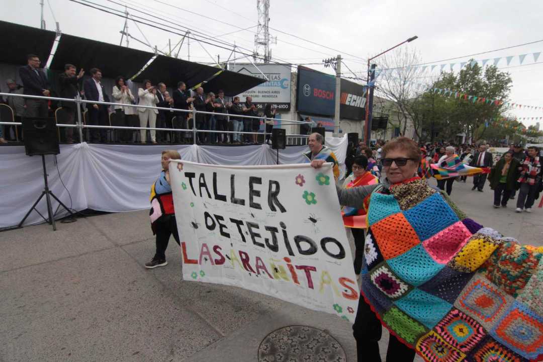 Pese a las condiciones climáticas de este domingo 6 de octubre, a partir de las 15 los vecinos comenzaron a ocupar sus lugares sobre la calle Fernández Oro para atestiguar el desfile aniversario.